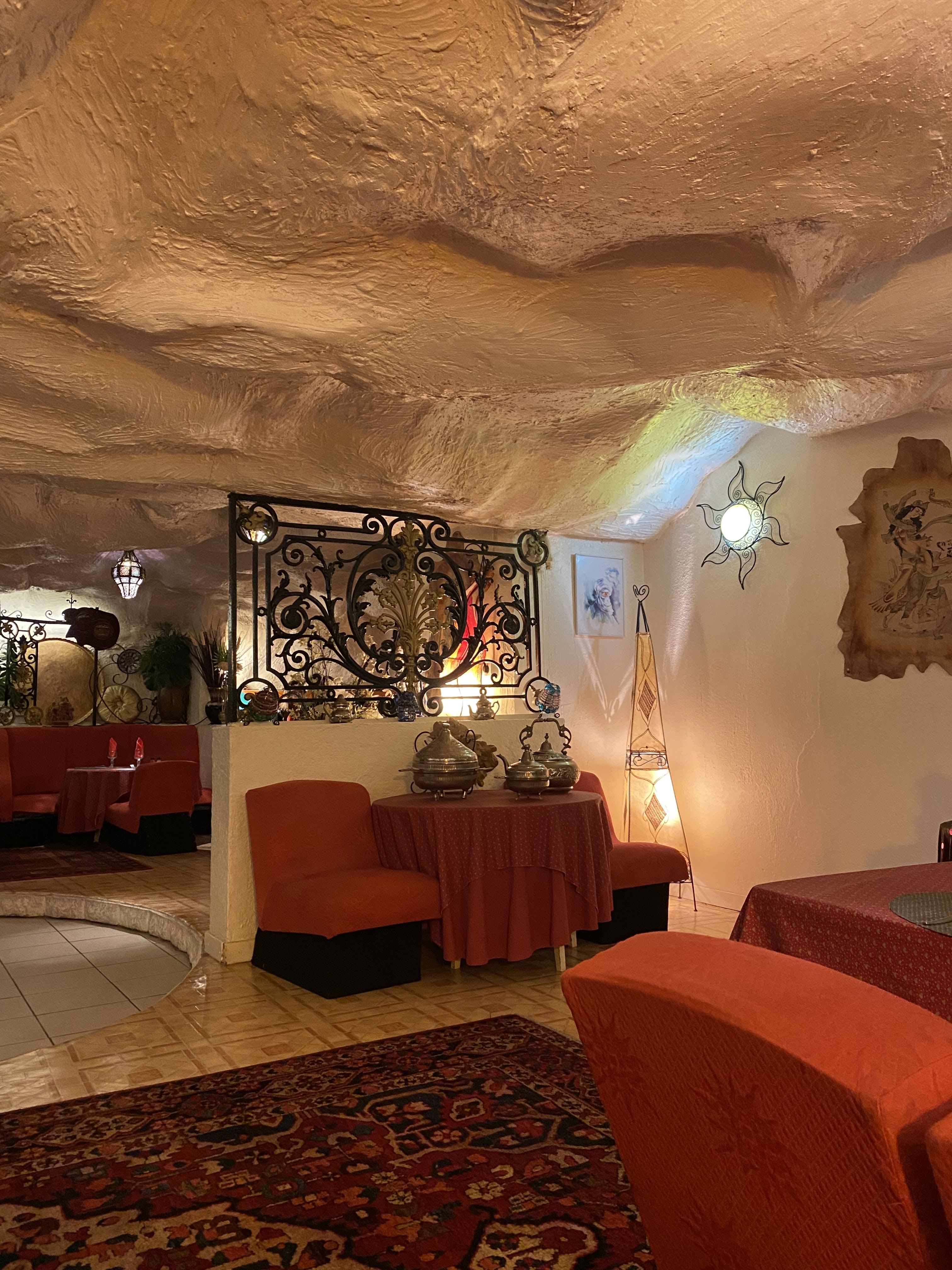 Déco sympa Malheureusement c'est loin d'être un restaurant oriental, le couscous est bon mais n'a aucun goût d'Orient, c'est tout juste un pot au feu Bien dommage car il y a du potentiel Accueil glacial, on a l'impression de déranger Nous décommandons