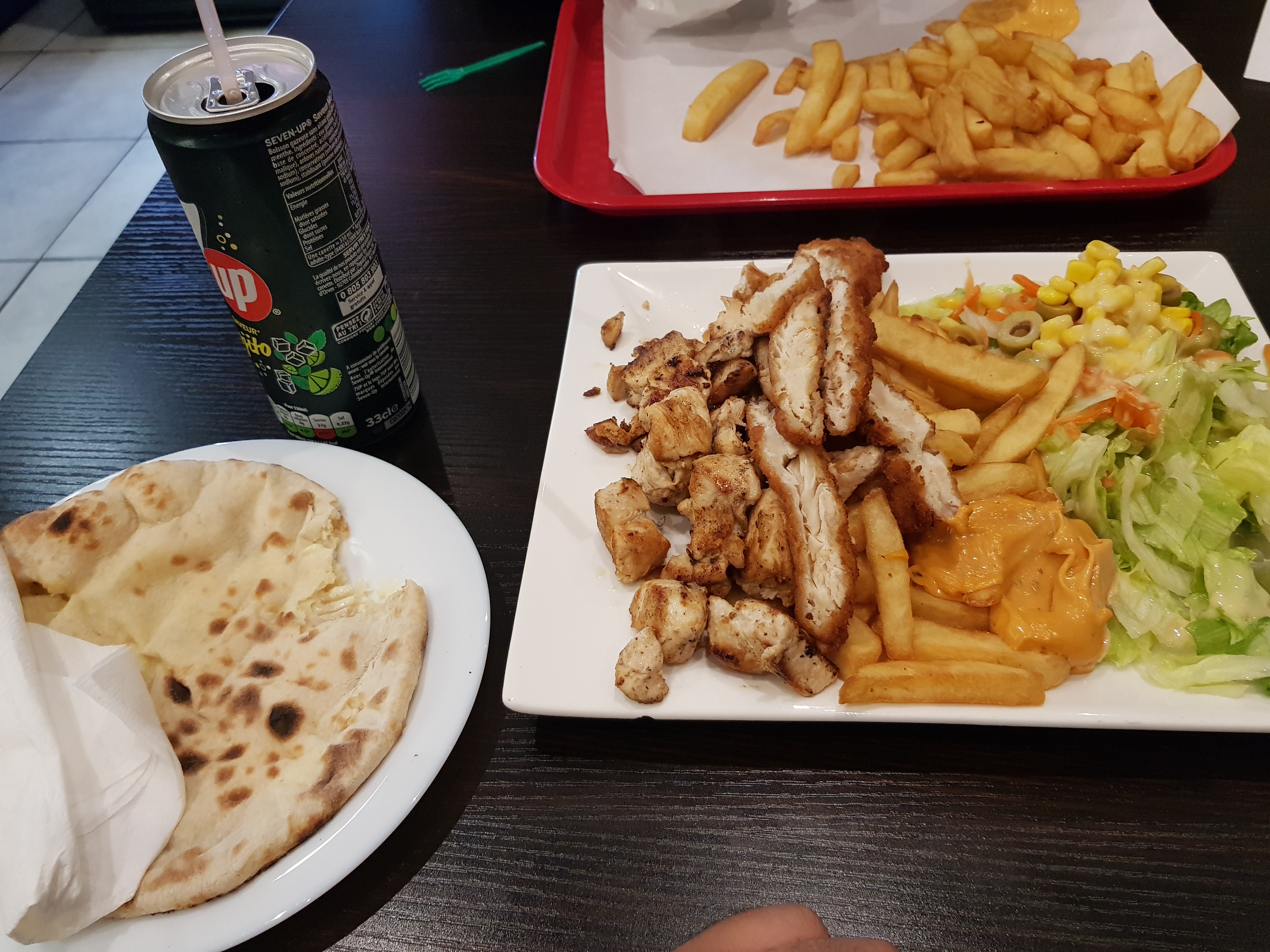 Très déçu... Kebab de bonne qualité ! Mais dommage, le pain est trop petit donc très peut de kebab à l'intérieur qui signifie que j'ai encore faim.. frite de très bonne qualité bien cuite à ne pas changer ! A rajouter plus de kebab ou changer la grandeur du pain. ( cure-dent de bonne qualité)
