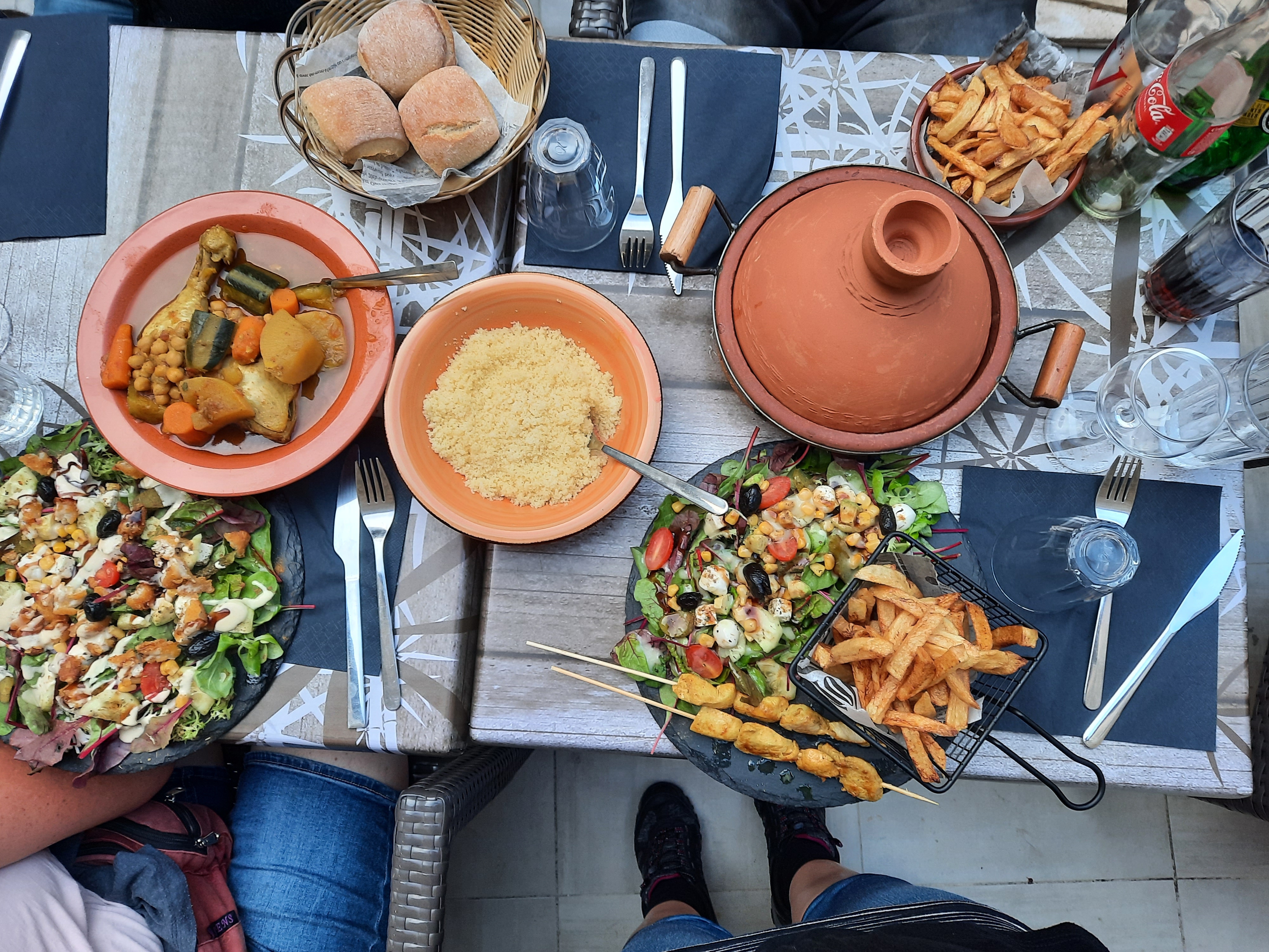 Un accueil sympathique et souriant ! délicieux tajine et couscous ! Et les pâtisseries emportées ! Et en période de canicule la climatisation bien agréable pour la soirée !