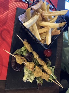 Nous avons très bien mangé ici. L'entrée était une salade de tomates et les plats principaux étaient des hamburgers avec des galettes de pommes de terre, des raviolis et deux brochettes de poulet avec des frites au fromage. Des biscuits et un café au lait pour le dessert. Le service a vraiment fait un effort pour que ce soit une excellente soirée. La nourriture était très savoureuse et délicieuse. C'est une ambiance sympa et une très bonne nourriture.