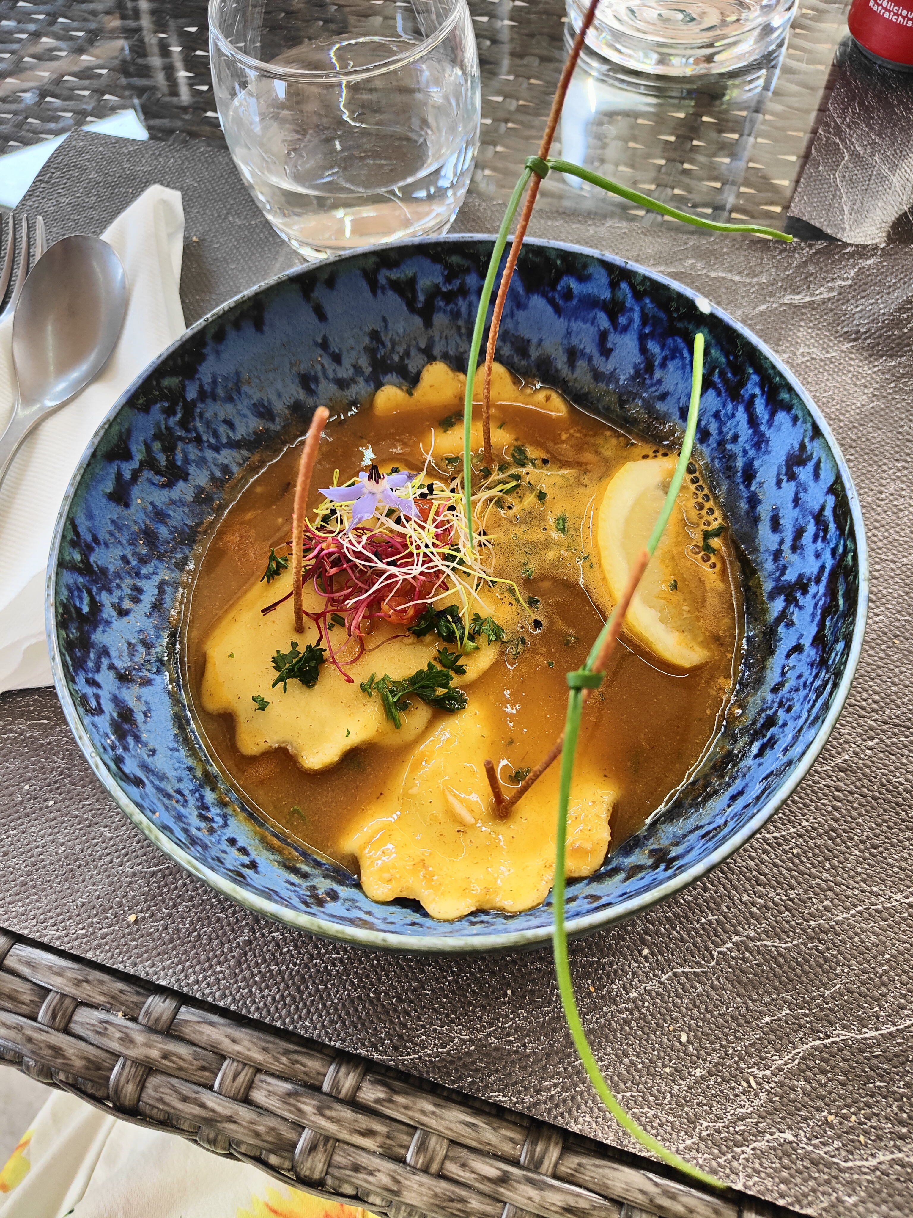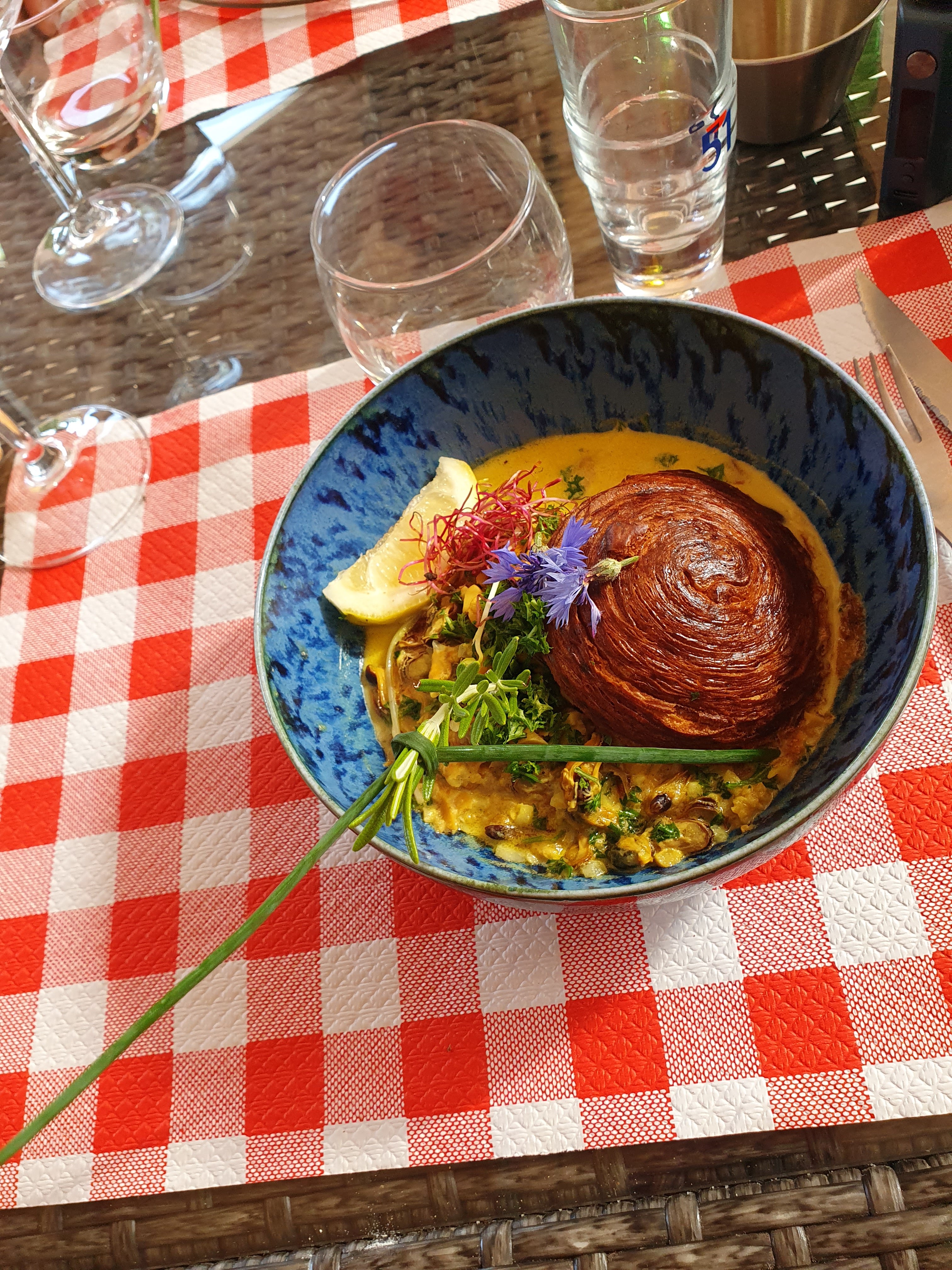 Que du bonheur. Le personnel adorable souriant. Le repas est digne d un resto gastronomique. Les plats sont magnifiques et savoureux. Je recommande vivement.
