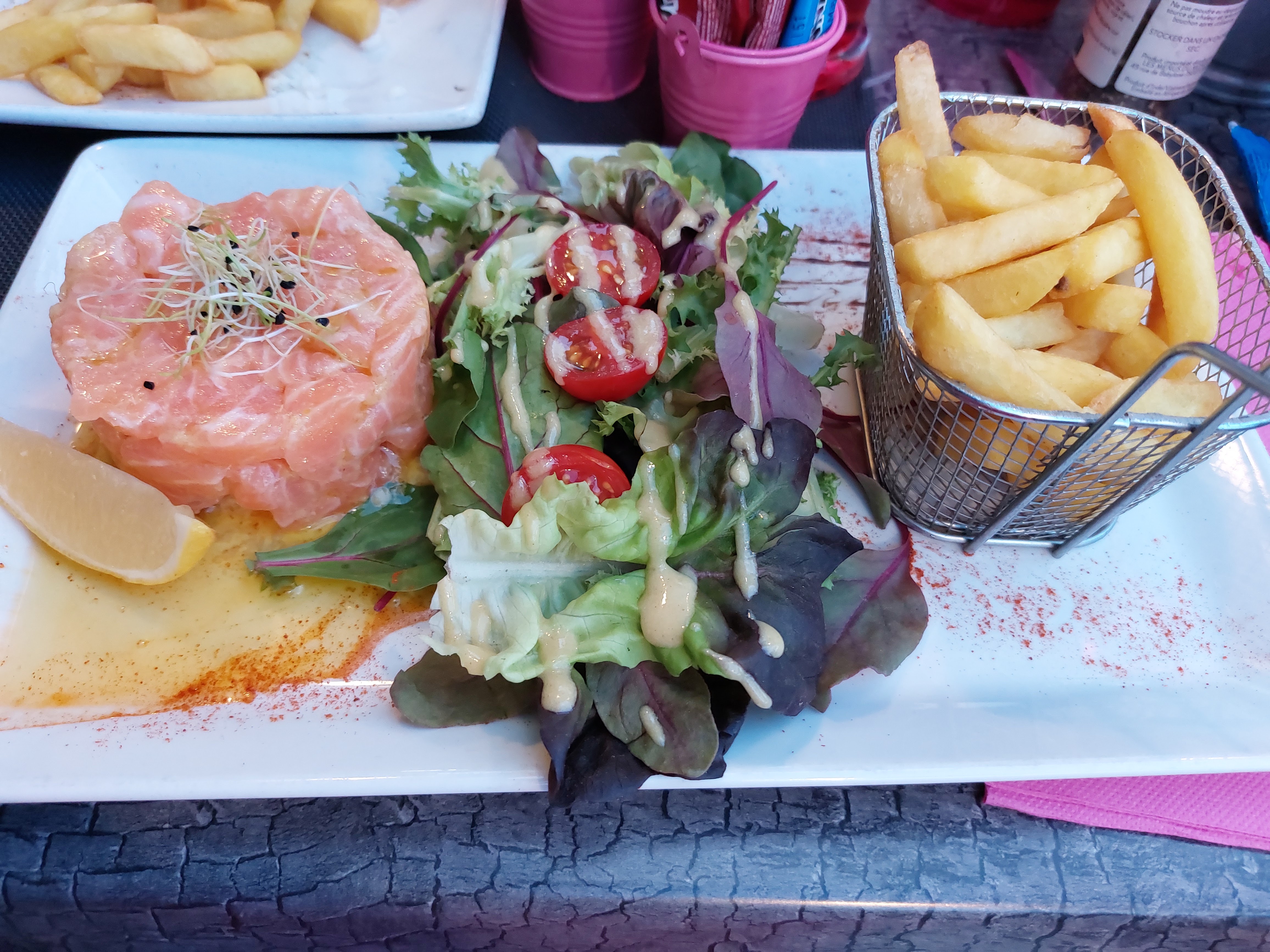 Super petit restaurant sur le port ! J’ai précisé dès le début que j’étais pressée, j’ai été servie hyper rapidement, le serveur et la serveuse sont adorables, souriants et efficace ! Rillettes de thon fraîche et bonne, tiramisu oreo très original, Virgin mojito délicieux Je recommande vivement ☺️