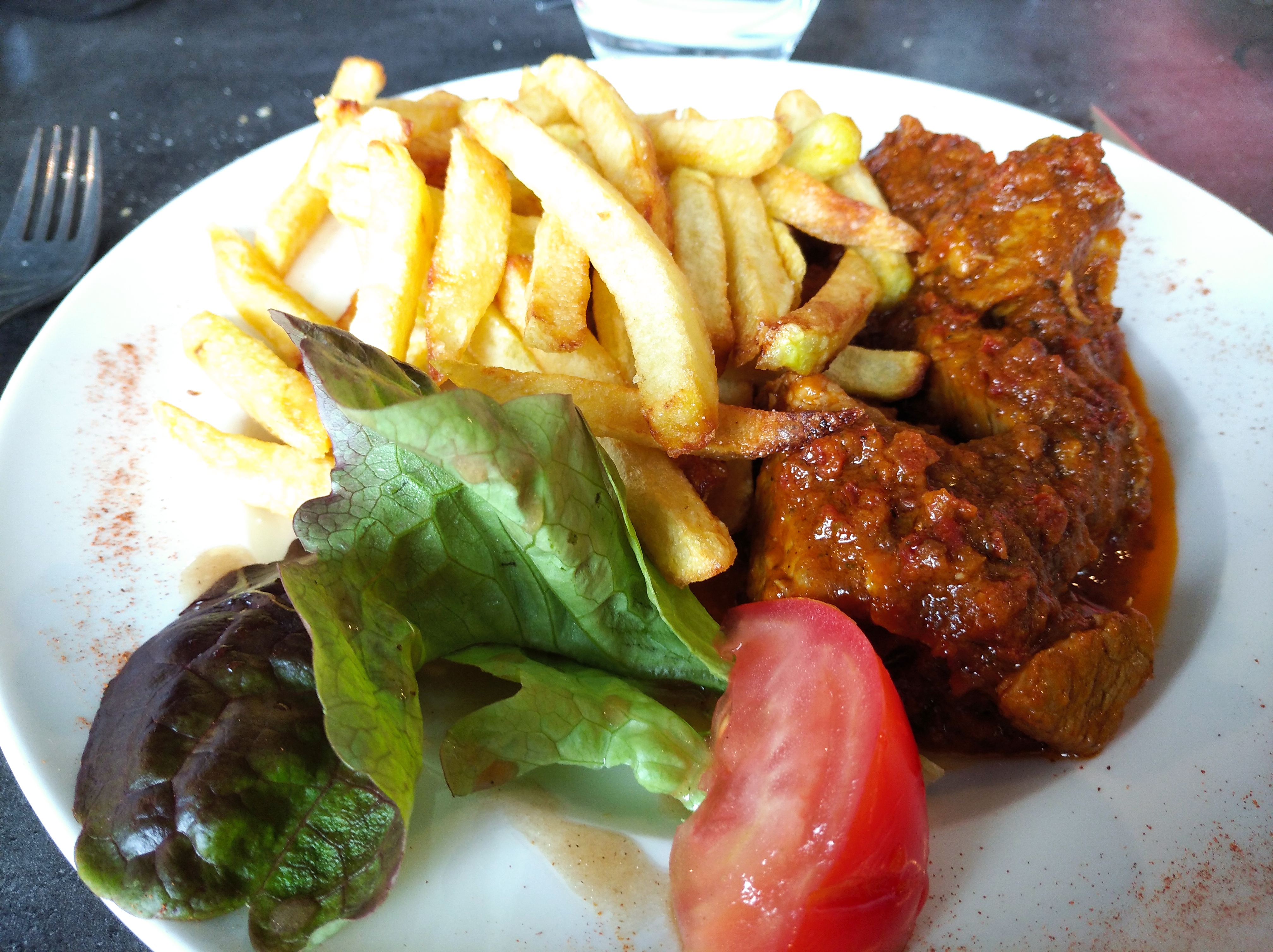Formule du jour pour moins de 14 euros, service rapide mais sert des pommes de terre décongelées en guise de frites maison
