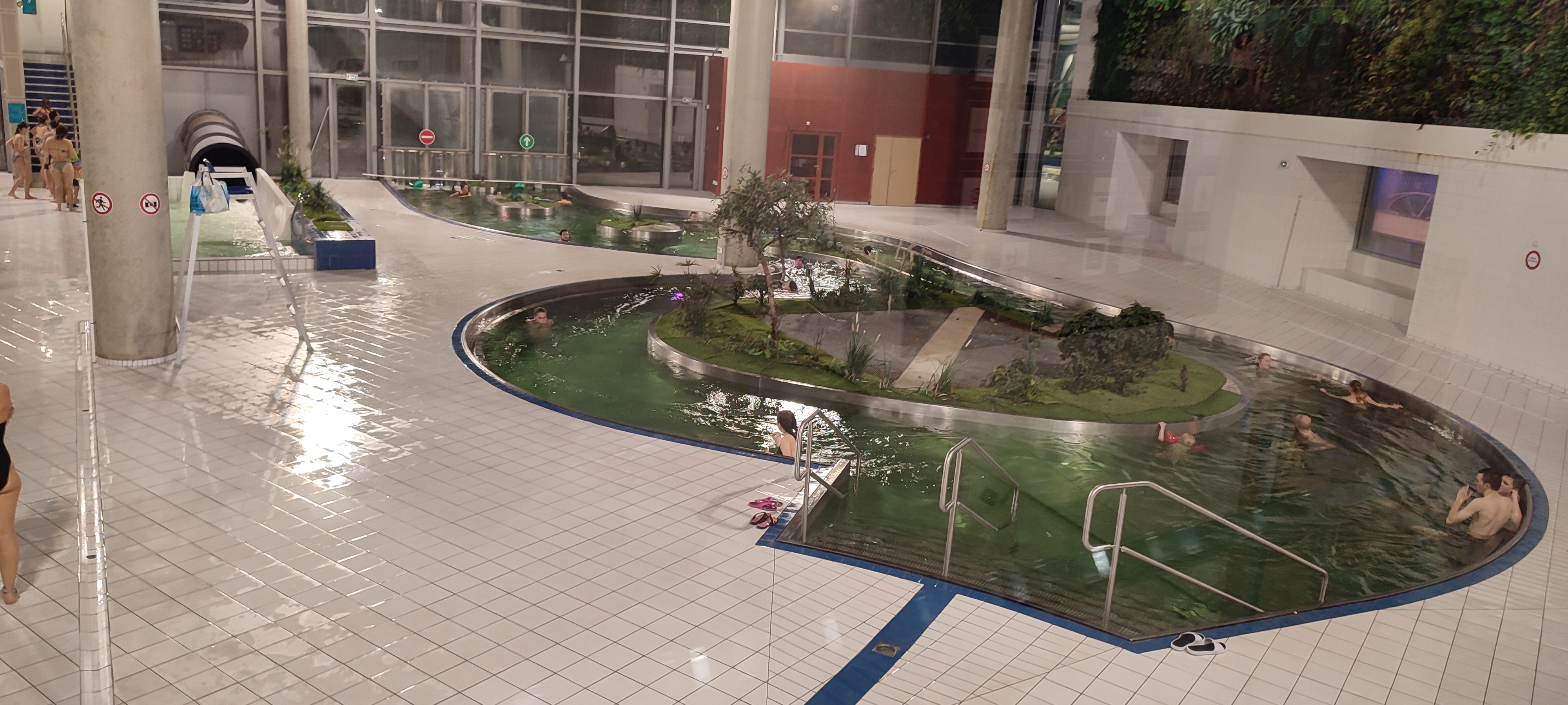 Déçue. Je m'attendais à un complexe aquatique au top et ce n'est pas le cas. 4min après notre arrivée (16h), le bassin central est évacué et on nous dit qu'il ne rouvrira au mieux que 1h30 plus tard (il reste donc 2 pataugeoires et la rivière pour tous les gens présents, autant dire qu'on est serrés) Photos interdites, pour les souvenirs on repassera. Un des derniers bassins dispo ferme pour cause de cours à 17h30 (compliqué car tout le monde s'entasse dans la petite pataugeoire ou la rivière) Je vois un petit toboggan près du petit bassin, je demande si on peut en profiter non c'est pour les écoles, ah ok eux qui payent ils vous se faire voir Bref 20e à 4 pour ça, pas ouf