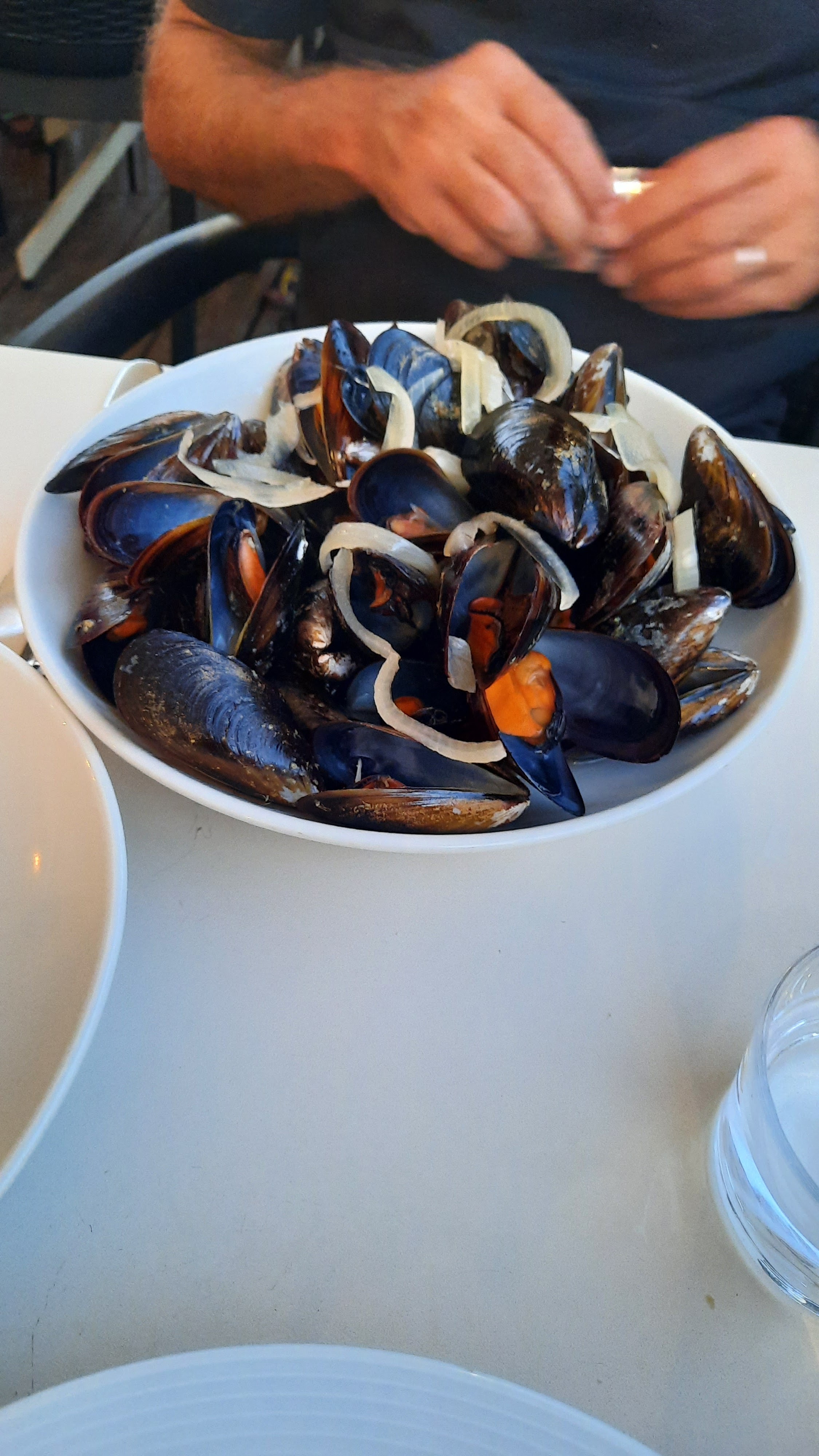 Dans un restaurant bien décoré, nous avons commandé 2 plats de moules marinières et un carpaccio de boeuf. Les moules etaient trop cuites et caoutchouteuses je pense qu'elles méritaient un nettoyage plus approfondi (beaucoup trop de vase). La recette des moules marinière est à revoir car absence d'échalote, de persil et pas de vin blanc au gout en bref un peu fade...le capriccio quand à lui etait cher (17€) pour la quantité de viande dans l'assiette. Les frites étaient délicieuses....la serveuse etant malheureusement toute seule pour ce service de midi, nous avons eu beaucoup d'attente pour la desserte de nos plats et nous nous sommes finalement rabattus sur les glaces à l'italienne d'en face....le bilan est plutôt décevant