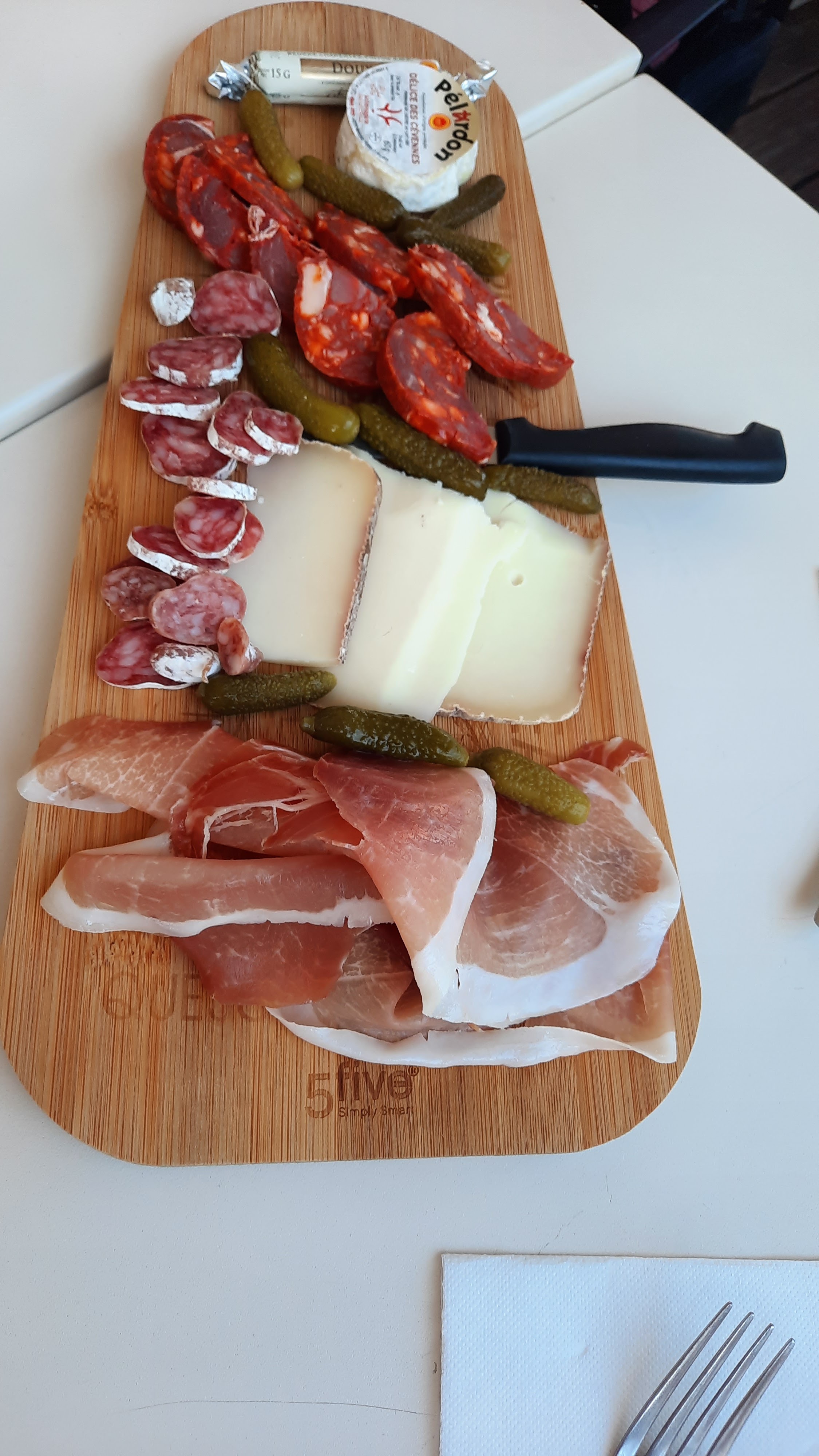 Tout d'abord, un bon point pour l’accueil, personnel chaleureux et professionnel. Pour l’entrée nous avons pris une planche pour 2, le prix est un peu élevé mais la qualité des produits est là : mention spéciale pour la tomme de brebis. En revanche pour les moules frites, le prix est correct mais les moules n’étaient pas assez cuite, résultat : un tiers des moules n’étaient pas ouvertes ou pas cuites. Enfin pour le dessert, ils sont bons mais pas cuit à la commande. Dans l’ensemble, l’expérience était agréable mais pas transcendante.