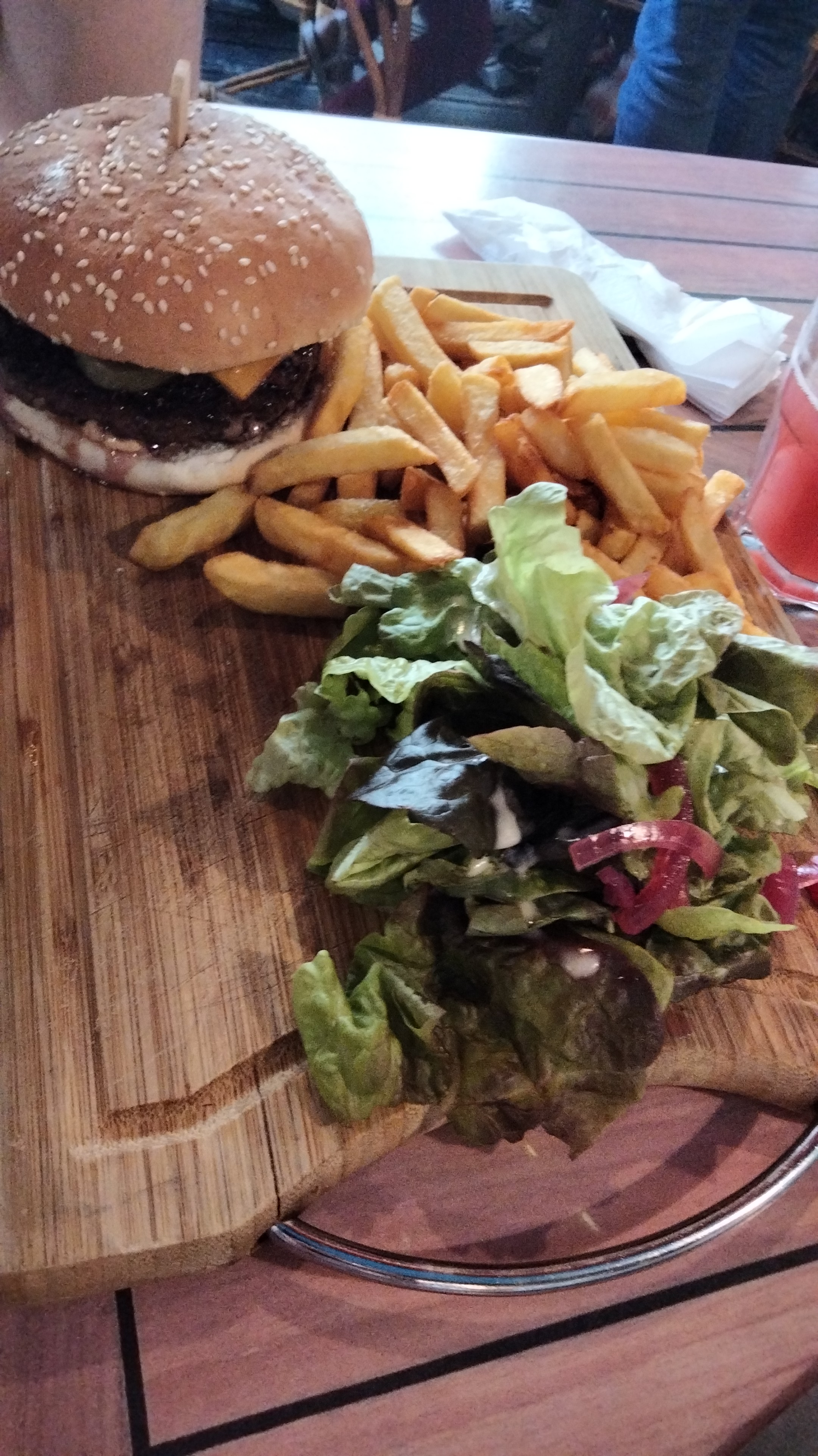 Nous sommes en pleines saison pour les moules de plus en bord de mer mais malheureusement pas grand choses à manger à l'intérieur j'avais plus de moules vide que pleines m'a femme à bien aimé son burger végétarien.