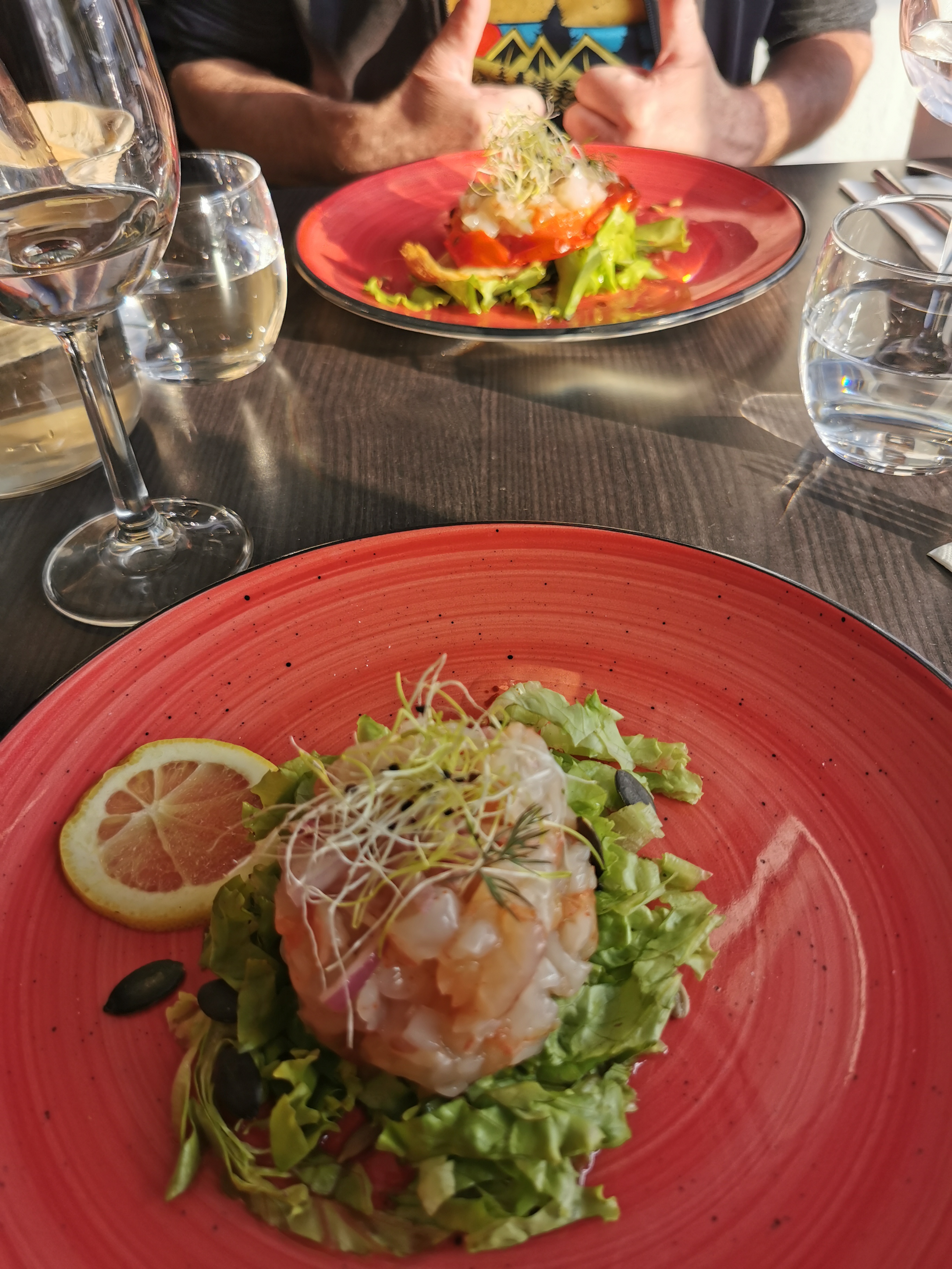 Déjeuné un midi en terasse bien sur! Belle vue belle assiette,bon service et passage du chef apprécié.ns reviendrons pour tester d autre plats.