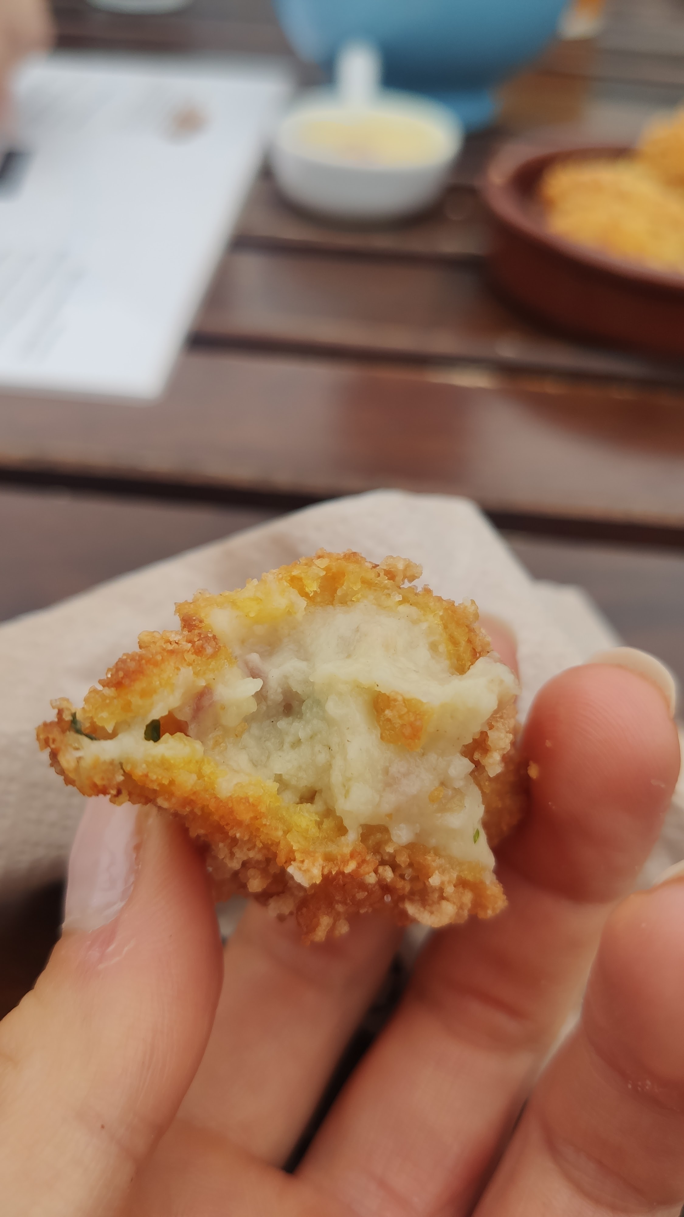 Tout était délicieux. Les chipirons étaient parfaits. Mention spéciale au pain qui est très très bon, à peine toasté, un régal avec les dips. Les croquetas étaient tops. Les frites de patate douce aussi. Belles portions. Le thé glacé maison manque de sucre, c'est dommage, on a simplement l'impression de boire un thé noir ou earl grey froid. Les desserts sont très bons et copieux. Dommage aussi que vous ne preniez pas les tickets restaurant.