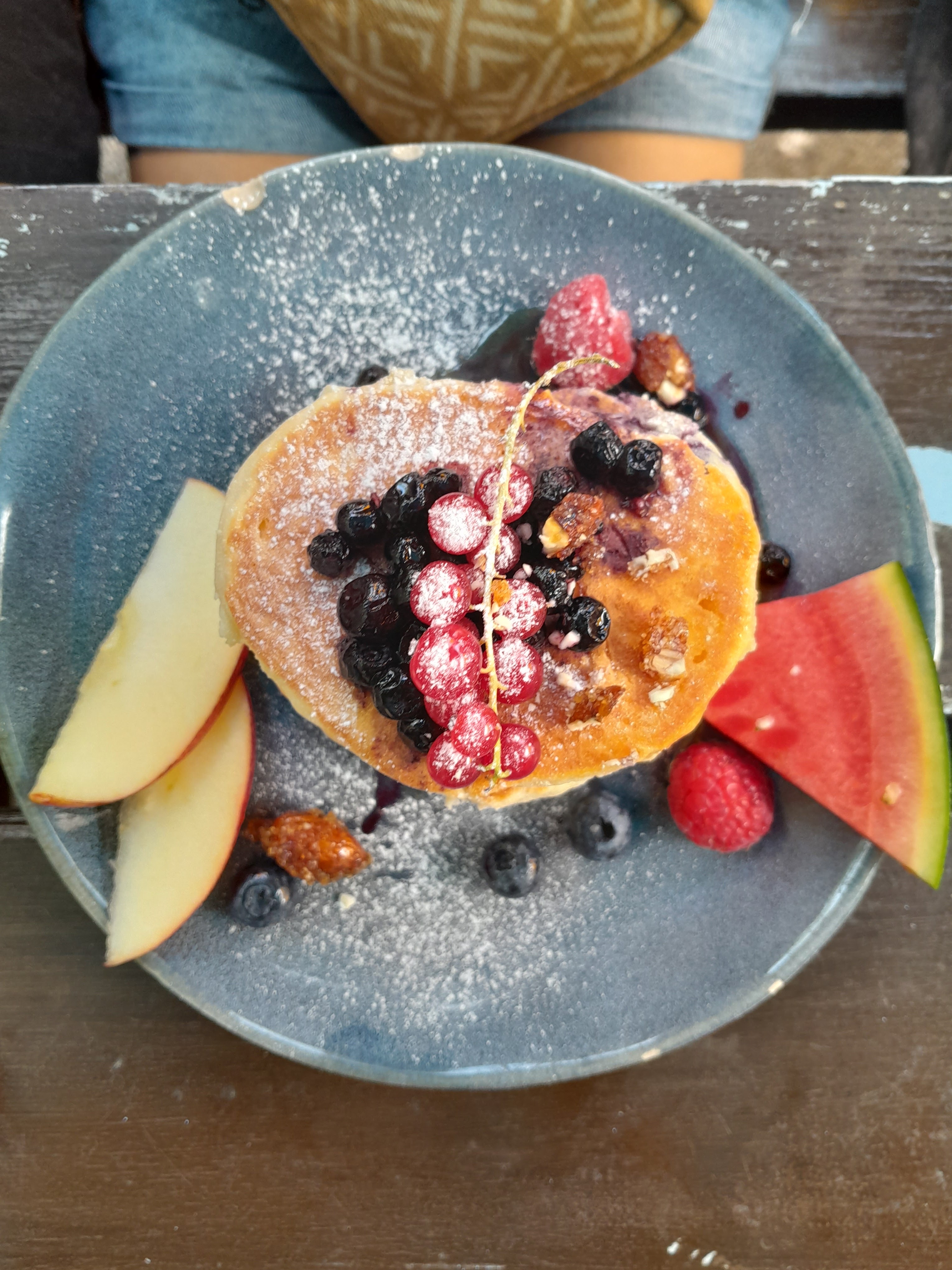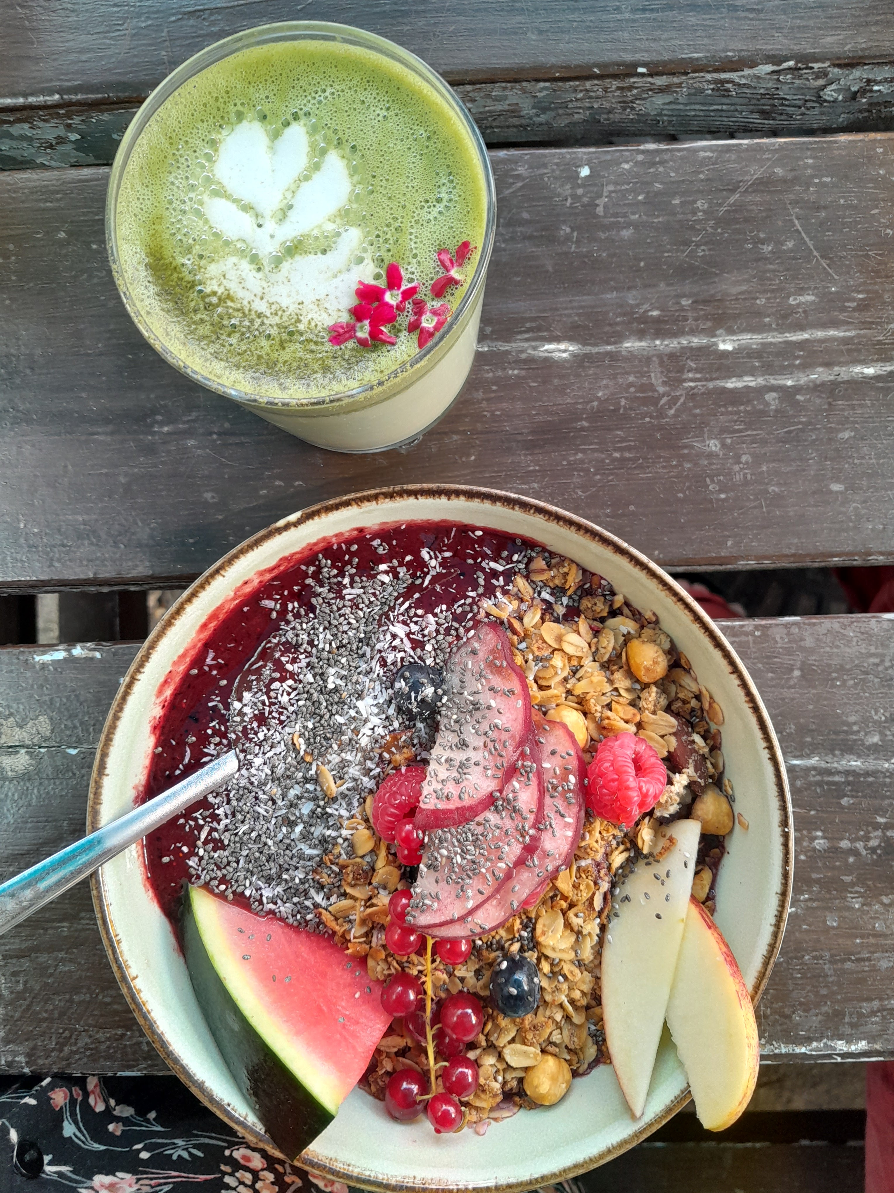 L'endroit est magnifique et très agréable, les employées sont adorables et gentilles. L'ambiance du lieu est très cosy avec la vue sur la plage en plus. Pour ce qui est de la cuisine c'est délicieux, il y a suffisamment de choix salé et sucré et d'options végétariennes et vegan. Le seul bémol serait le prix qui peut être légèrement élevé (11€ le smoothie bowl, ou 5€ un matcha) mais pour la qualité de la cuisine ça vaut le coup pour se faire plaisir de temps en temps. Les quantités des plats étaient suffisantes sauf pour les pancakes qui étaient trop petits et pas assez rassasiants. C'est un endroit et une adresse à retenir pour une expérience agréable.