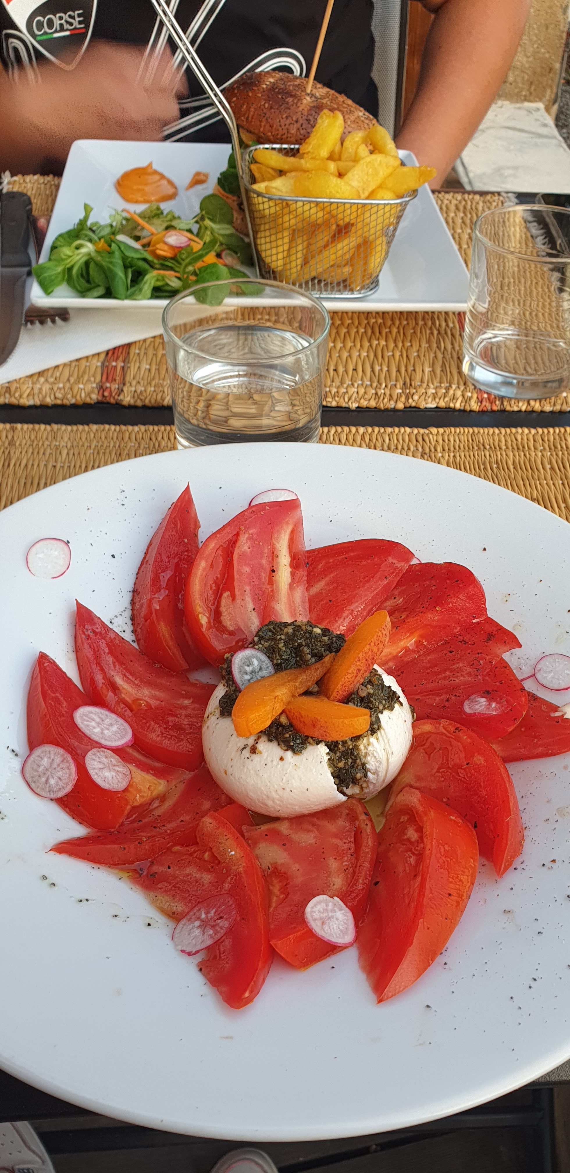Nous avons dîné ici en séjournant dans le petit mais beau village niché dans les Alpes Provençales ! Il est situé sur la petite place de la place, une position plutôt stratégique mais à la fois calme et assez tranquille. Nous avons pris un burger classique avec des frites : très bon, tant au niveau de la viande que du reste du plat et de l'accompagnement, bien cuisiné, savoureux et agréable ! Et un caprese aux tomates, burrata et vinaigrette au basilic : le plat, en général, n'est pas mauvais mais la sauce au basilic (une sorte de pesto) n'était pas à mon goût, trop aillée et lourde. Le personnel était très sympathique, gentil et patient, même la langue différente n'était pas un gros obstacle ! Le rapport qualité/prix est assez élevé mais globalement moyen pour le quartier.