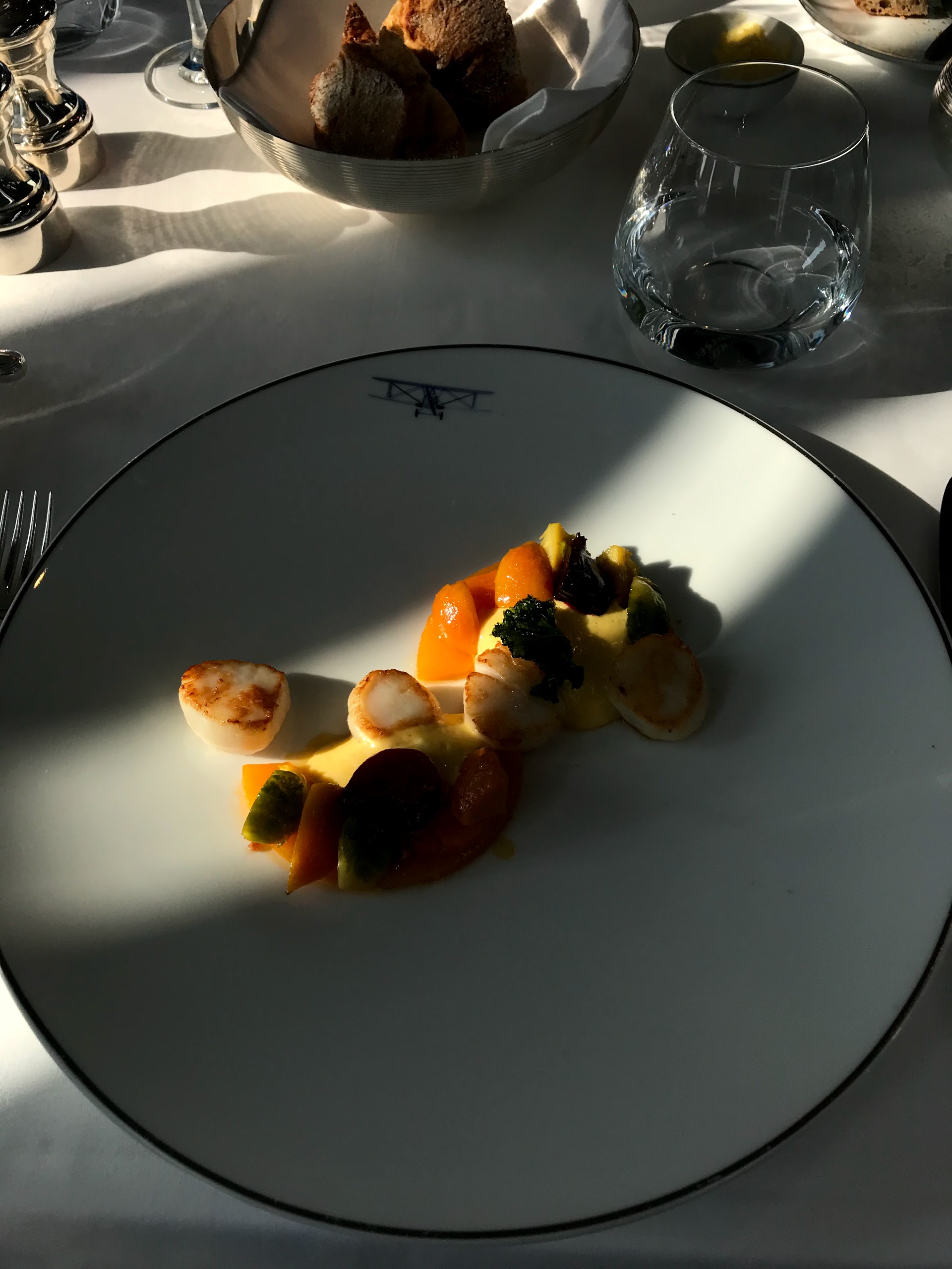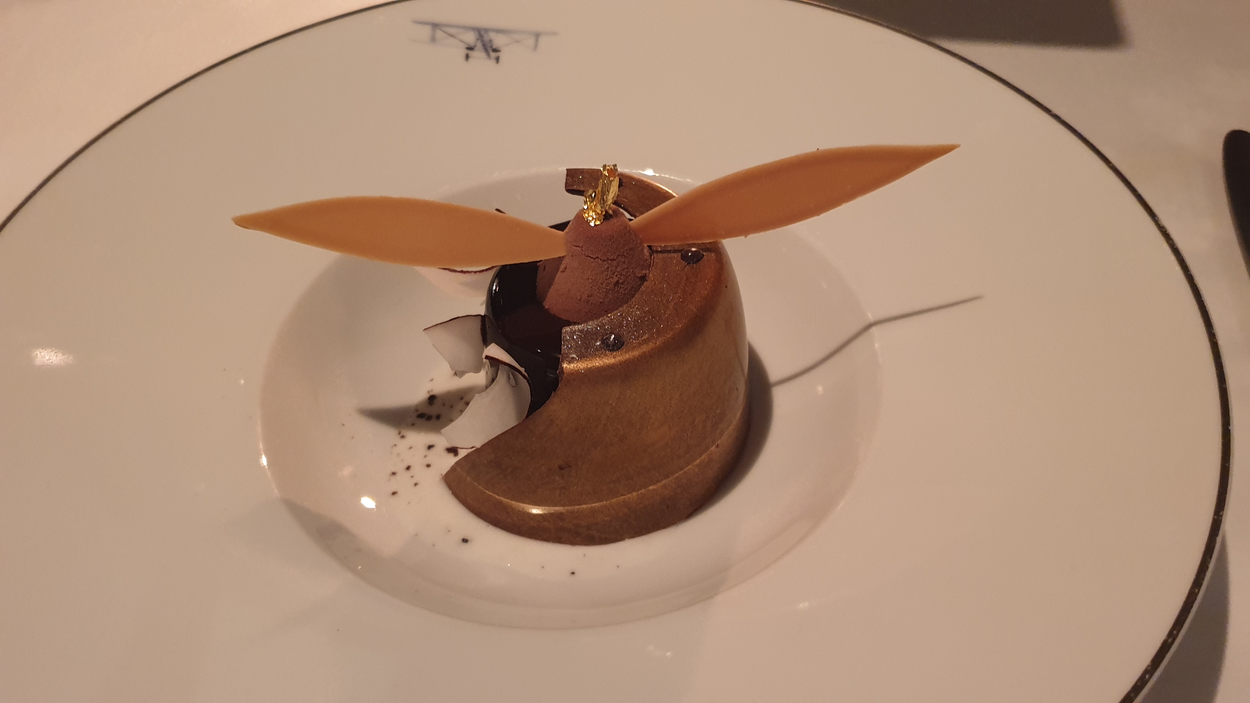 1/ La cuisine n'est pas à la hauteur des prix affichés : c'était bon, mais sans plus. Et les cocktails laissent désirer... 2/ Après avoir réservé pour 21:30 en précisant que nous avions une gift card avec menu dégustation, on nous annonce, à table, que le menu dégustation n'est pas servi après 21:30... Aucun geste commercial de la serveuse... 3/ La cadre est (évidemment) très agréable (décoration qui ne peut que plaire aux passionnés d'aviation). Reste que la vue n'est pas non plus exceptionnelle (quelques balcons et toits pas très jolis). Bref : je ne recommande pas !