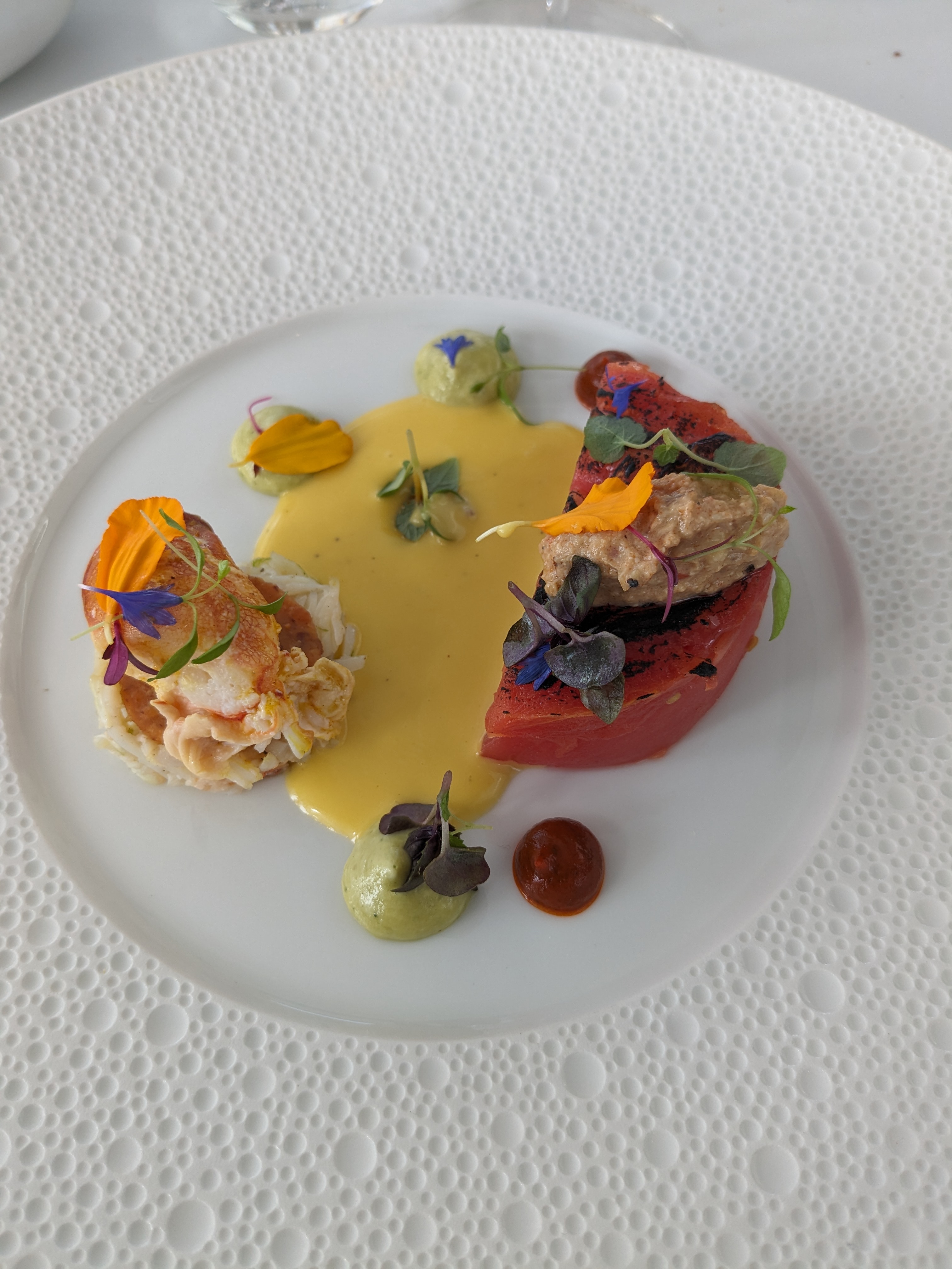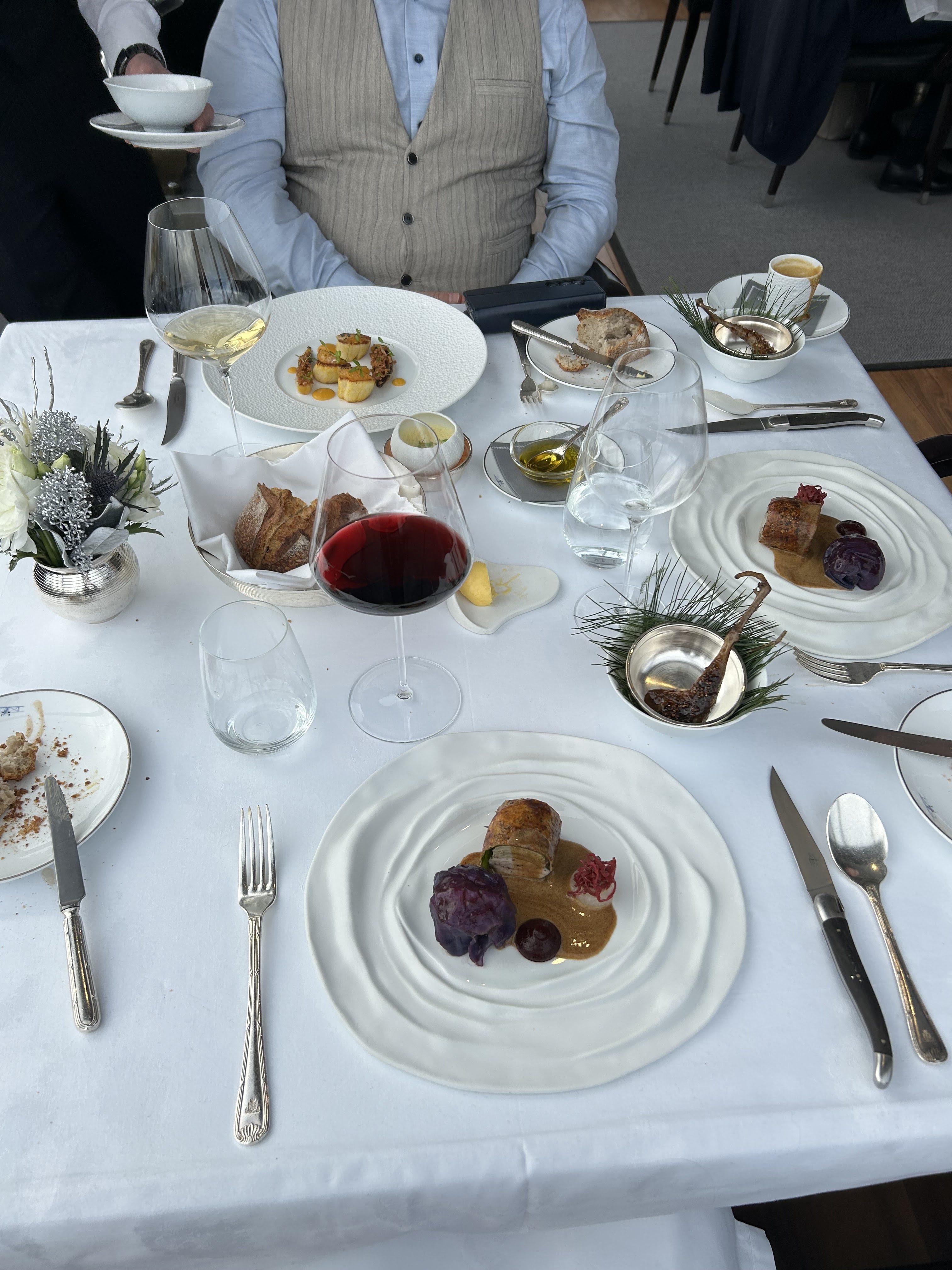 Les plats étaient délicieux mais pour un restaurant de ce niveau le service était décalé. Pas de sommelier digne de nom, attente debout dans l'entrée pendant 5 minutes ou l'obligation de demander du pain. Le contenu de l'assiette et la vue ne suffisent pas, nous étions dans un deux étoiles.