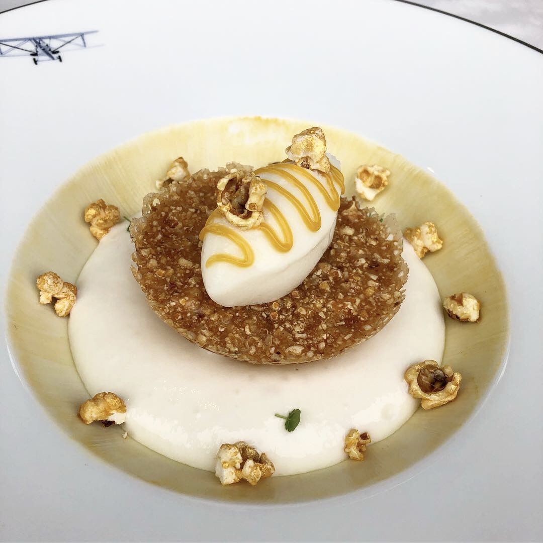 Absolument époustouflant. Le + : Déjà rien que le cadre est à couper le souffle. La vue de notre table donnait sur la Tour Eiffel et sur le Sacré cœur. La décoration sur le thème de l’aviation est vraiment chouette. Tout est dans le détail, la dame de l’accueil en robe d’époque, les projecteurs en laiton, jusqu’aux nuages brodés sur la nappe. Le - : Acompte de 200 euros à verser à la réservation qui sera déduit de la note. Prix : Menu dégustation à 255 euros par personne (6 services) Mon conseil : N’oubliez pas de faire un tour aux toilettes, vous ne le regretterez pas (quelle vue de folie) !