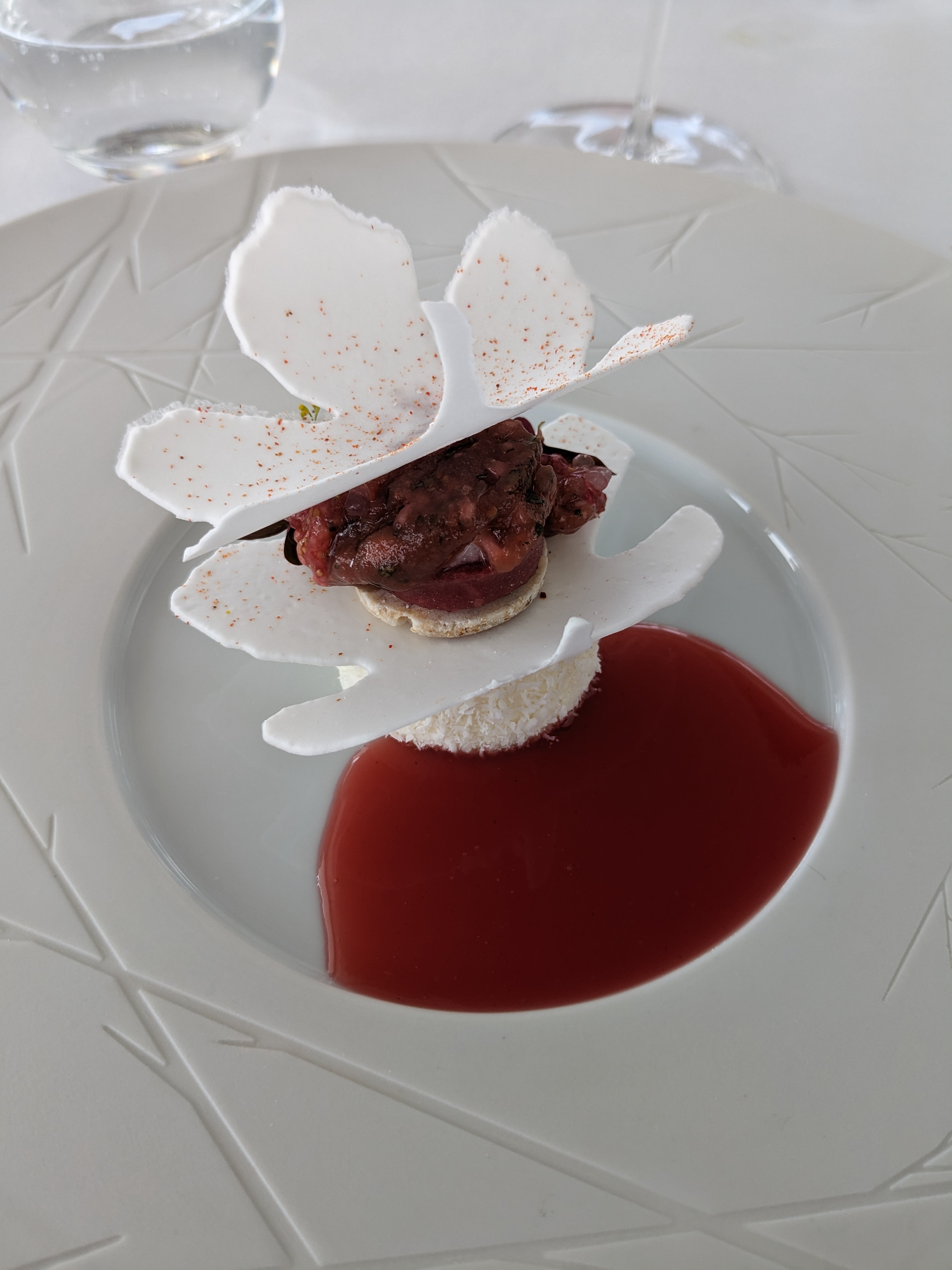 Vue incroyable, service impeccable, repas absolument délicieux à chaque plat et très grand vins pour accompagner le tout. Déjeuner de très haute volée. Le prix est élevé mais c'est clairement un établissement de grande qualité à tous les niveaux.