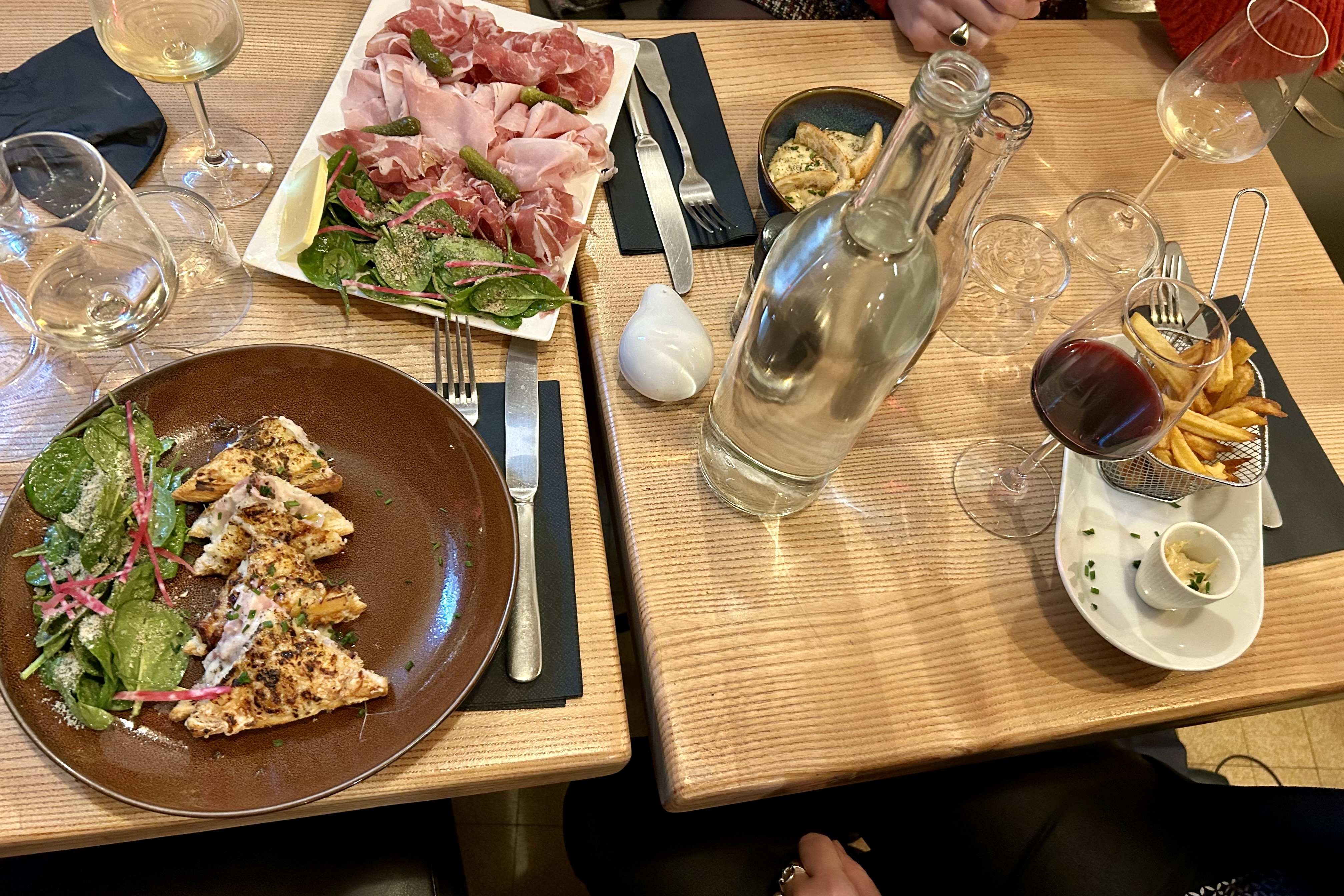 Je suis arrivé tard à Lyon donc la plupart des cuisines étaient fermées ou fermaient. Le personnel formidable de ce petit bijou était sur le point de fermer la cuisine mais l'a gardée ouverte pour nous et nous a même donné des plats supplémentaires et ajusté un plat (car l'un de nous était végétarien - ce qui n'est d'ailleurs pas optimal lorsque l'on recherche options de dîner à Lyon). La nourriture était bonne, surtout la burrata, mais ce qui distingue vraiment cet endroit, c'est l'atmosphère chaleureuse et conviviale.