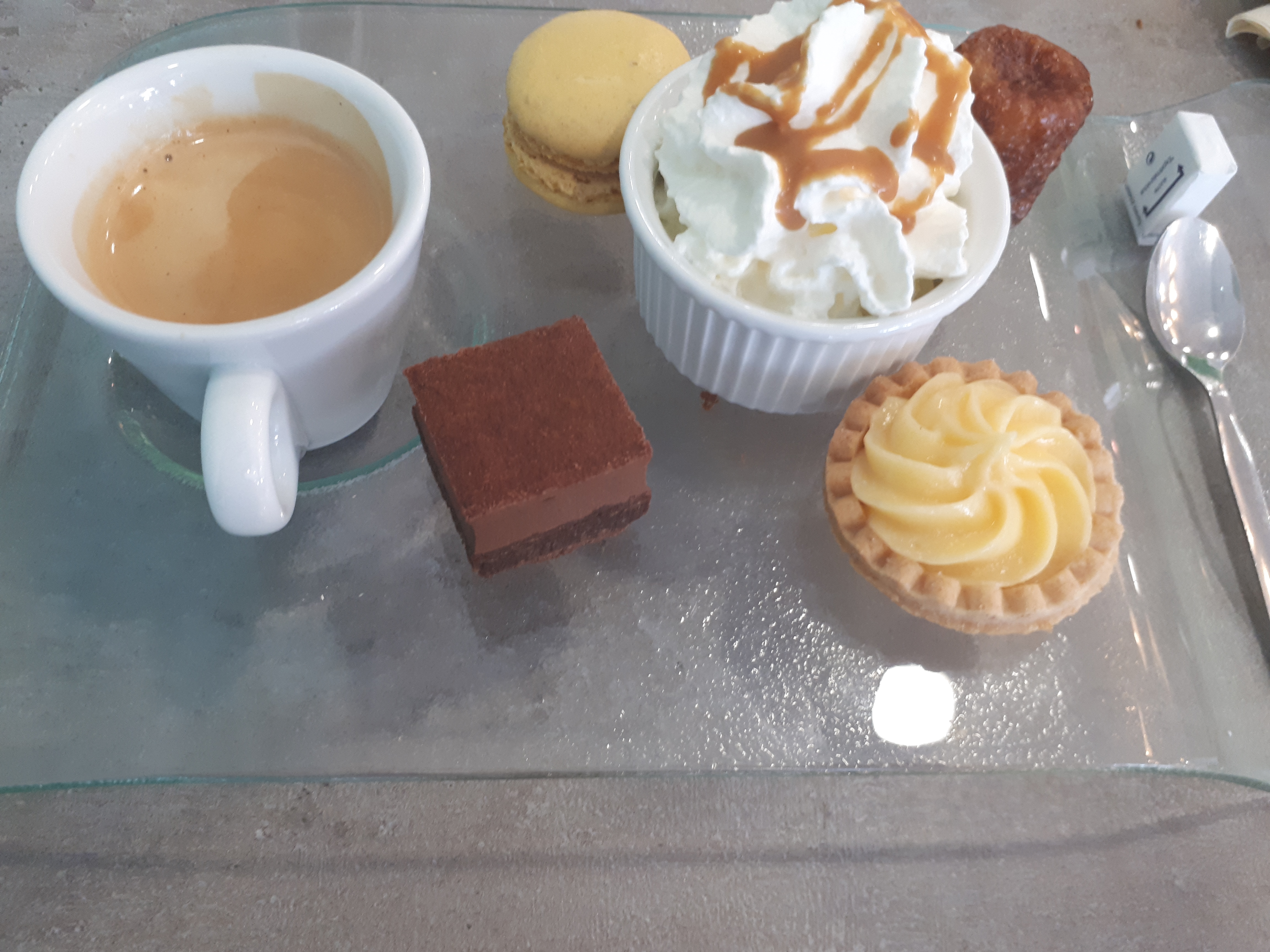 Cadre qui est très agréable avec belle terrasse et parking mais nourriture au niveau de décoration.sauf le dessert qui est bon