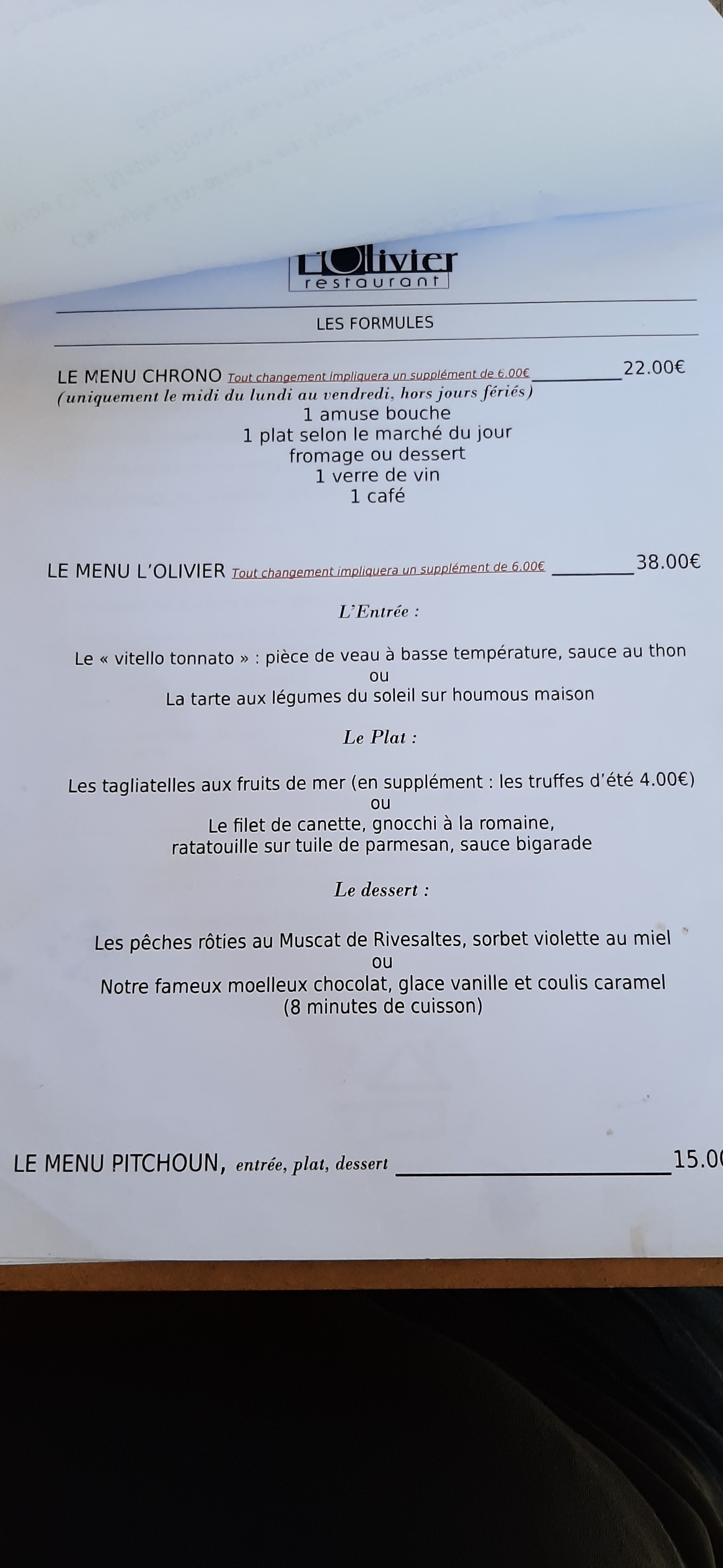 Nous étions venus manger à l'Olivier il y a 2 ou 3 ans, un peu déçus de la qualité des plats. Nous sommes revenus il y a quelques jours, et le nouveau chef a ravi nos papilles. Le menu découverte se compose d'une suite de gourmandises qui s'enchaînent, beaucoup de saveurs et un personnel aux petits soins. Une belle découverte. Nous reviendrons
