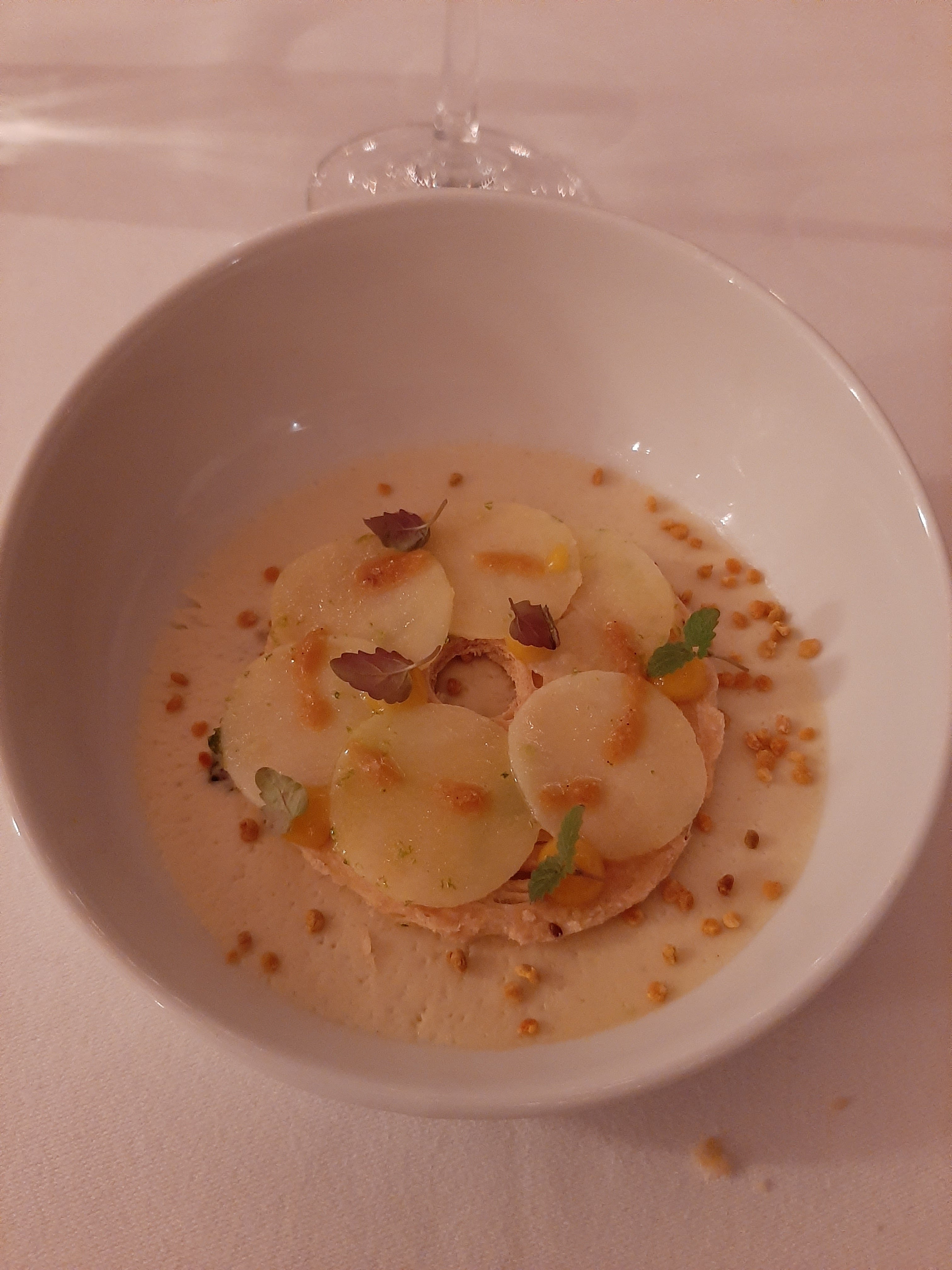 Des serveurs au top et très aux petits soins!!!un cadre idyllique magnifique..et une belle surprise d assiette mmmmm!petite quantité mais juste ce qu il faut et d un délice! Rapport qualité prix,rien à dire!!!!!merci à vous