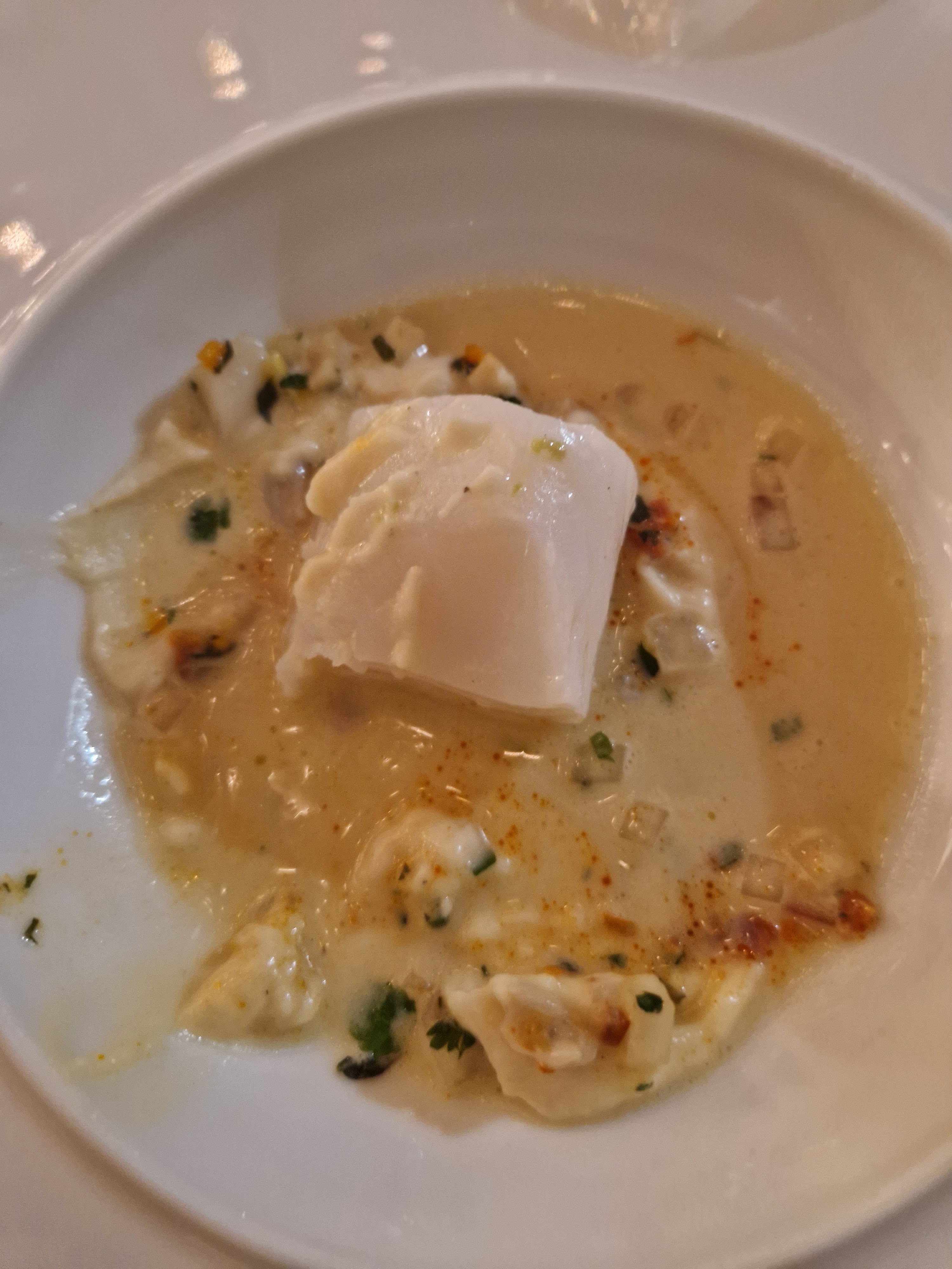 Dans l'assiette on est très très loin du niveau d'un gastro, que suggère à première vue la carte réduite, et surtout les prix élevés. Amuse bouche particulièrement mal présenté et sans finesse (des cubes grossiers d'aubergine et une crevette froids au curry). Haddock en entrée correct mais accompagné de patates mal cuites. Souris d'agneau pas mauvaise en soi mais l'intérêt d'y avoir vaguement intégré quelques anchois reste un mystère pour moi. Service efficace, cadre agréable.
