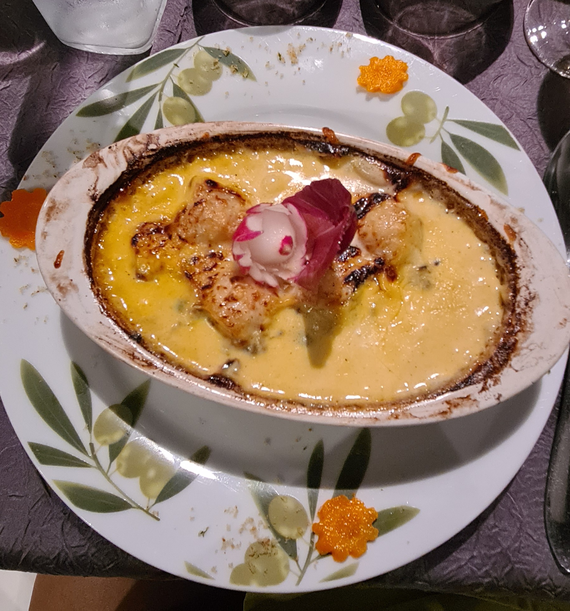 Je ne me souviens plus du nom exact de mon plat, c'était un médaillon de volaille au comté quelque chose comme ça. Tout simplement une tuerie, j'ai adoré !! Mes collègues avec leur friture de carpe ont été tout aussi satisfaits.