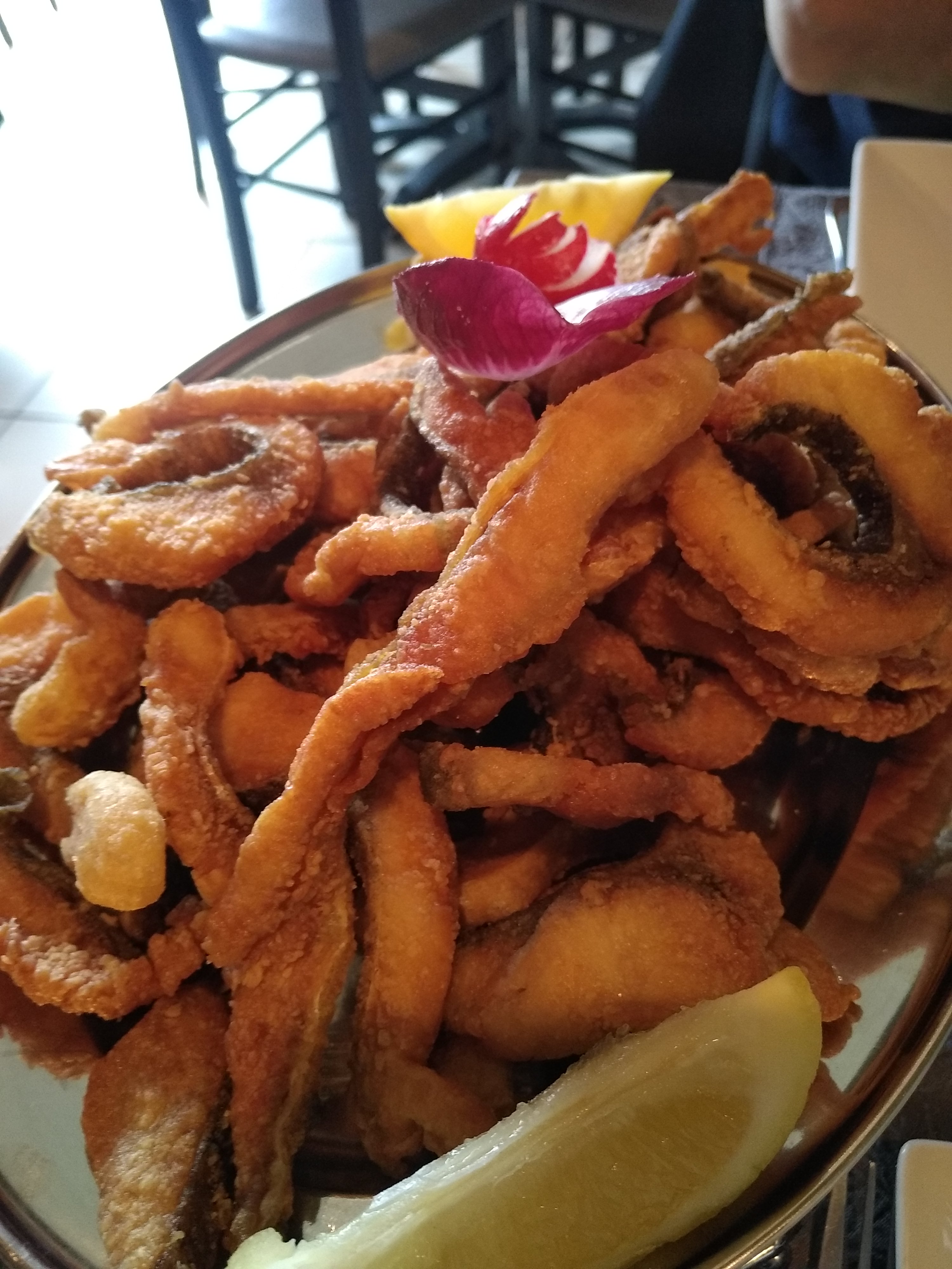 Cadre super agréable, ne pas se fier à l'extérieur, personnel très sympa et accueille chaleureux. Friture, très moyenne peut mieux faire, plats décorés et beaux à regarder, lieu à essayer.
