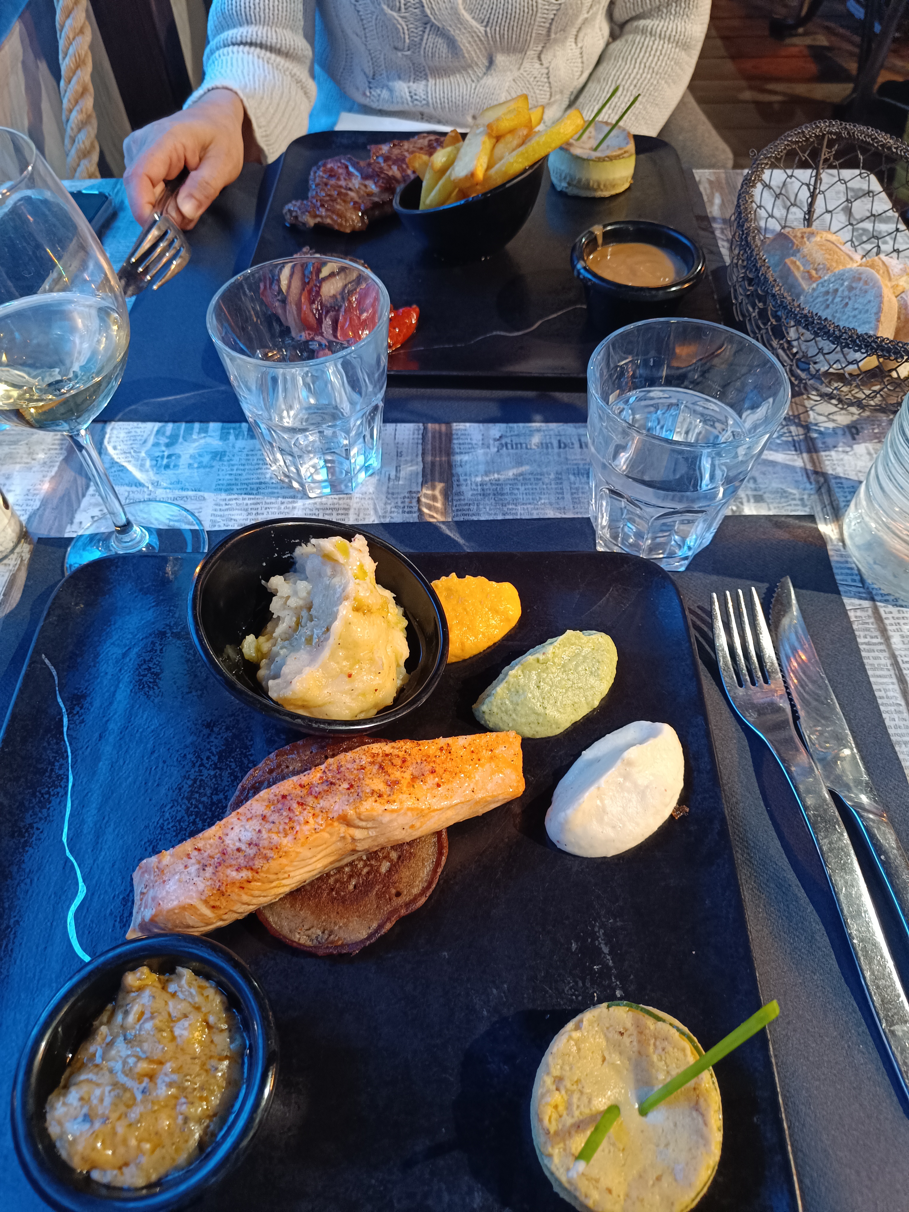 Super découverte, nous avons très bien mangé (rillettes de saumon, faux filet avec accompagnement frites et légumes, nougat glacé) , très bien présenté. Le personnel est très sympa , je recommande !