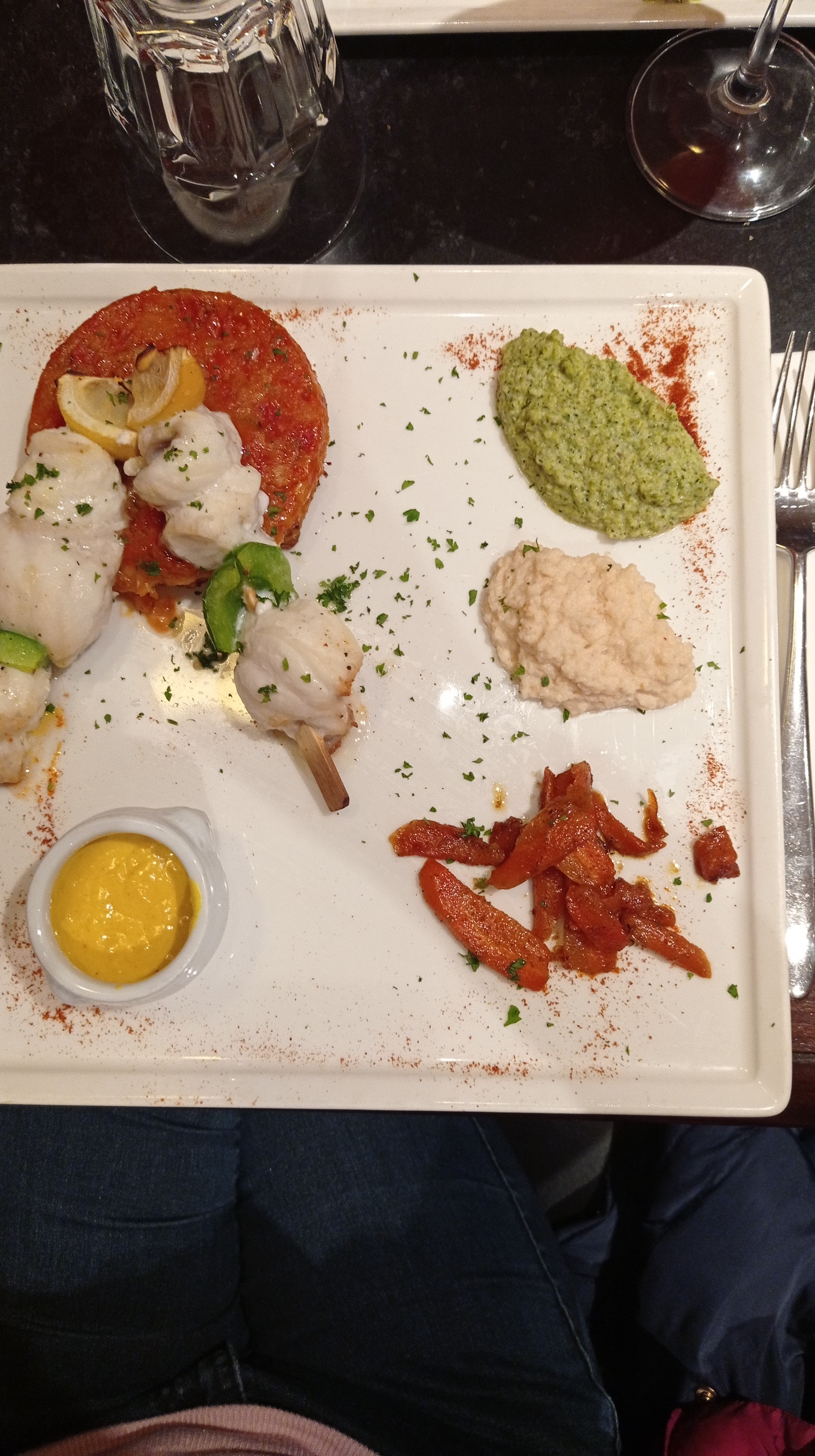L'entrée était bonne mais très déçu du reste. Nous avions pris le médaillon de lotte qui était froid et gros doute sur le poisson. Pas le goût de lotte et présence d'ecaille alors que la lotte n'en a pas ! Ils nous ont certifiés que s'en était... nous doutons.... quant à l'accompagnement, rien de très élaboré. Les purées sont probablement surgelées car on dirait exactement celle que j'achète à Picard pour mes enfants... la ratatouille n'avait pas le goût d'une ratatouille fraîche mais plutôt en boîte..... dommage l'entrée était plutôt réussi. De plus nous étions vraiment collé à la table d'à côté et il y avait une mauvaise odeur d'égout par moment... déçu de ce restaurant...