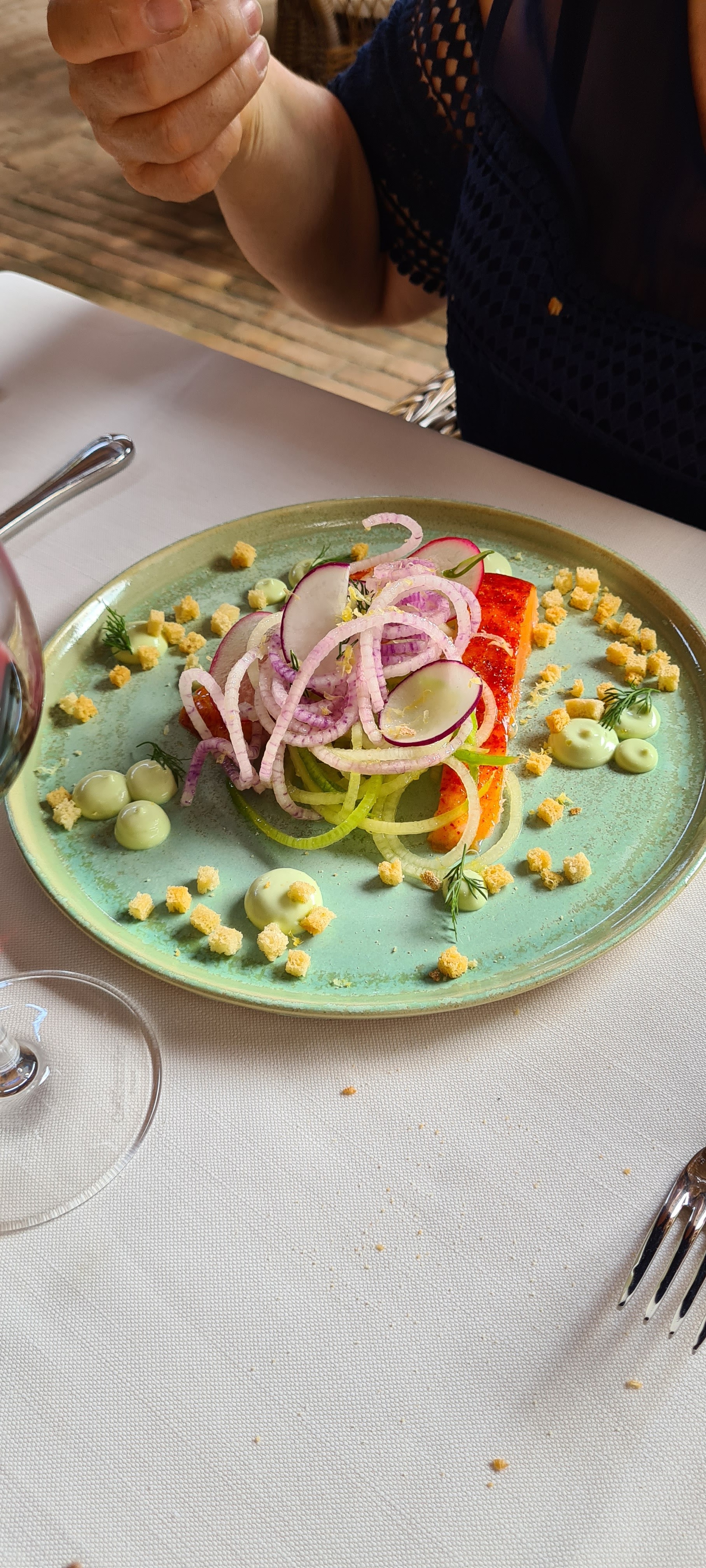 Je recommande vivement ce restaurant. Le cadre est époustouflant. Nous avons eu la Grande Cuvée rosé - l'un des plus beaux rosés que j'ai jamais mangé - ainsi que le poulpe, la raie, le pâté et l'agneau. La nourriture était absolument divine. Le service était également excellent - compétent, attentionné et très accueillant.