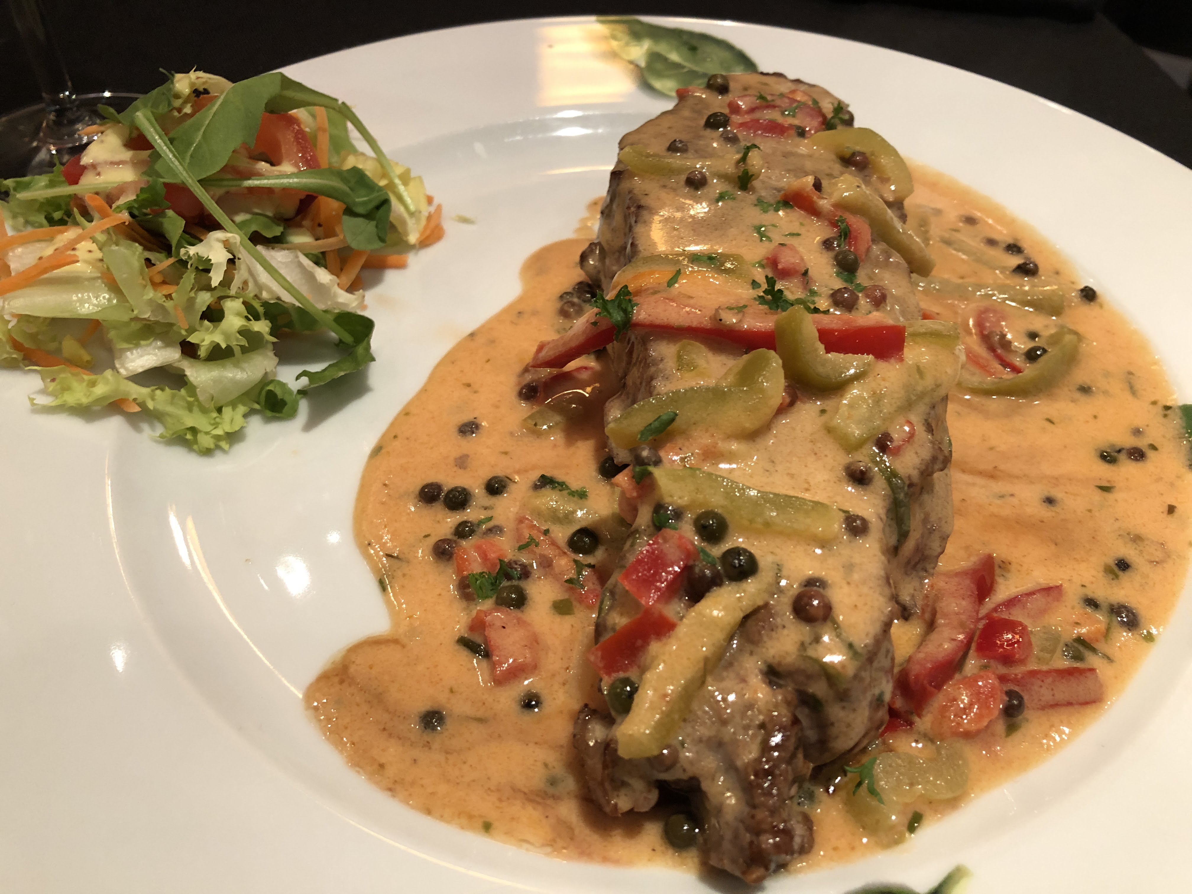 C'est la seconde fois que nous y allons et cette fois je me suis laissé aller a une suggestions Pourquoi pas Émincé de volaille au chorizo, trop bon mais assez piquant.