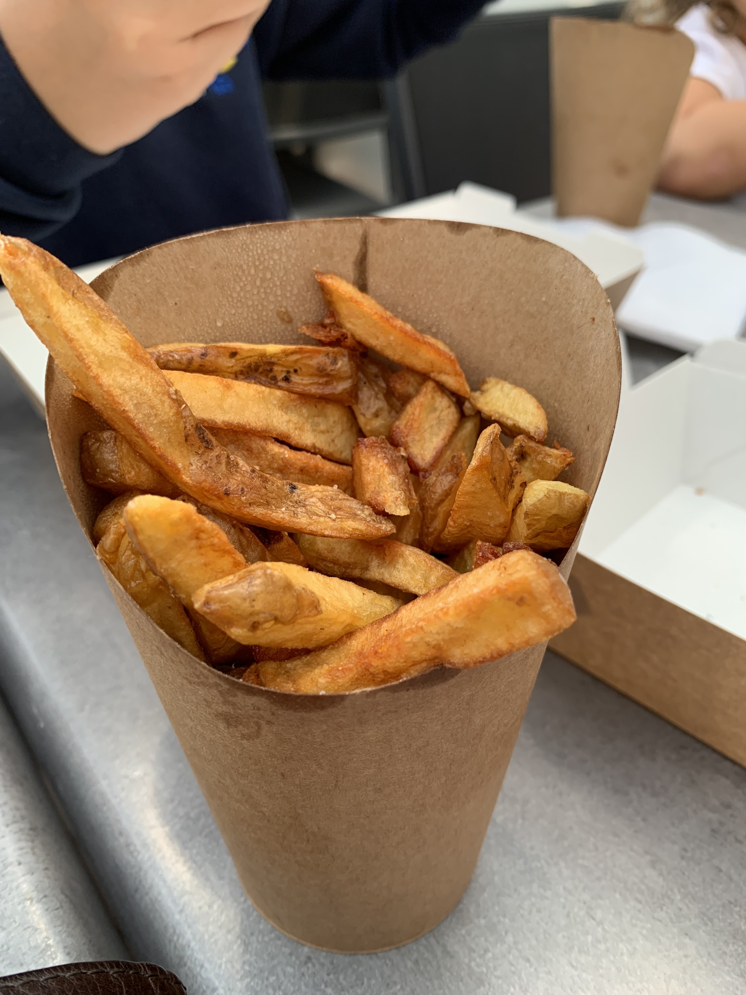 A emporter. J’y suis venu 2 fois, 2 burgers différents et vraiment rien d’inoubliable. Le dernier burger (le Ma’fé) a rendu beaucoup d’eau, sans réel saveur (en dehors de la coriandre), je ne saurais dire ce que j’ai mangé. Quant aux frites, presque carbonisées et en petits bouts (voir photo)… no comment. 2 fois, mais pas 3!