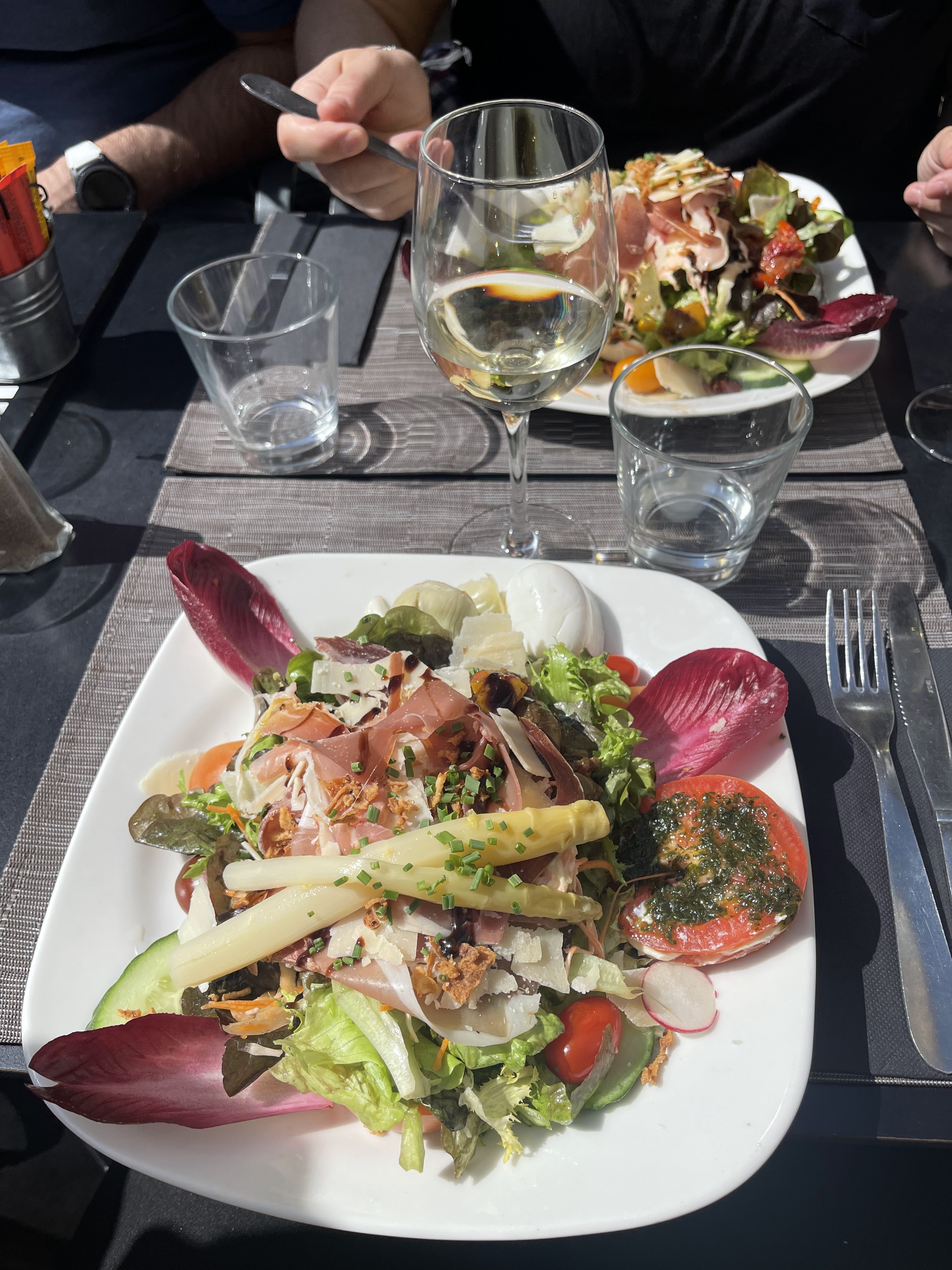 Top, plat excellent et superbe terrasse avec de l’ombre et du soleil! Petit bémol sur le sentiment d’être un peu serré en terrasse tout de même
