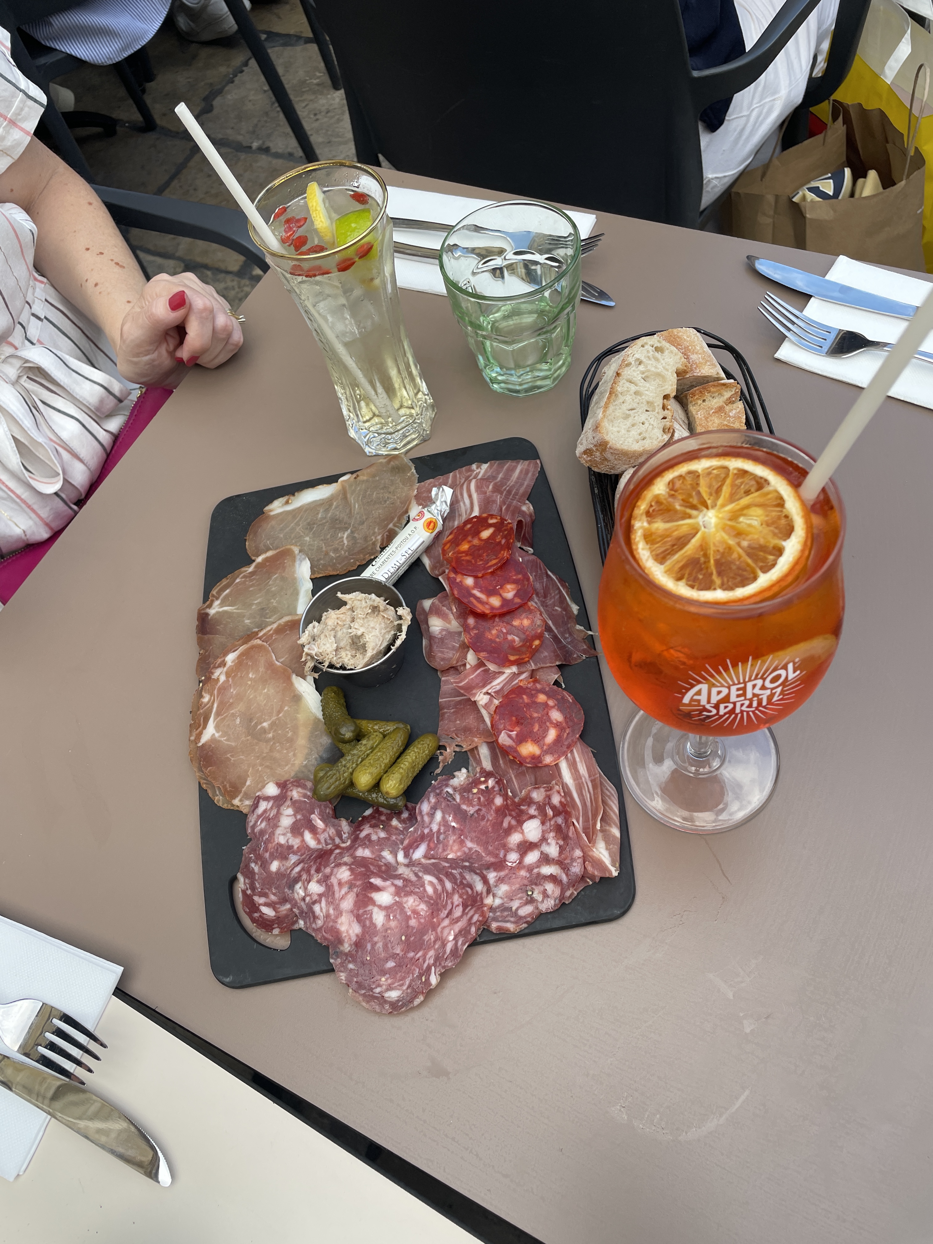 Délice super délicieux, bonne charcuterie et foui gras, bon vin, ambiance jeune et cool. Merci!