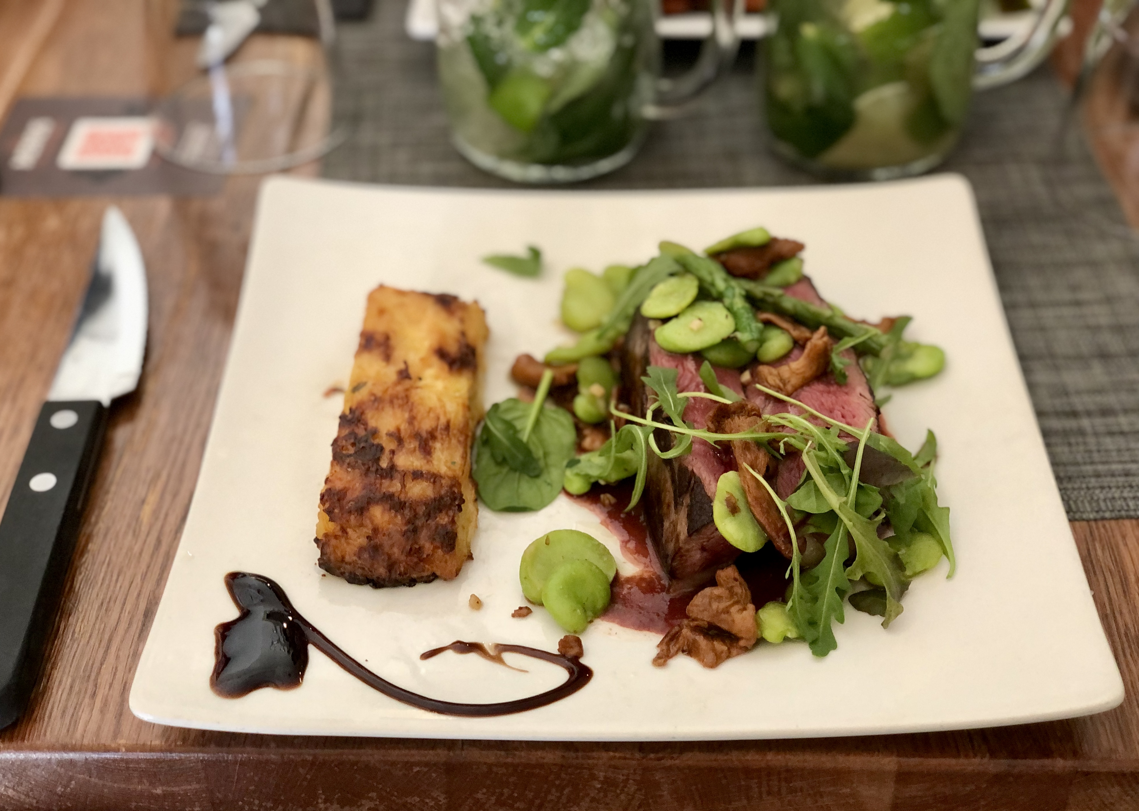 Visité il y a un an ! Je trouvais le restaurant très sympa avec un personnel de qualitée Plats : PAVÉ DE BŒUF GRILLÉ, SAUCE BORDELAISE, FRITES et CUISSE DE CANETTE CONFITE AU VINAIGRE DE FRAMBOISE, FRITES Plats : LE SUD OUEST (STEAK HACHÉ, FOIE GRAS POÊLÉ, BACON, FROMAGE, OIGNONS, TOMATE, PICKLES, SALADE ROQUETTE ET SAUCE.) LE BASQUE (STEAK HACHÉ, POITRINE DE PORC, FROMAGE DE BREBIS, OIGNONS, PIQUILLOS, TOMATE, PICKLES, SALADE ROQUETTE ET SAUCE.)