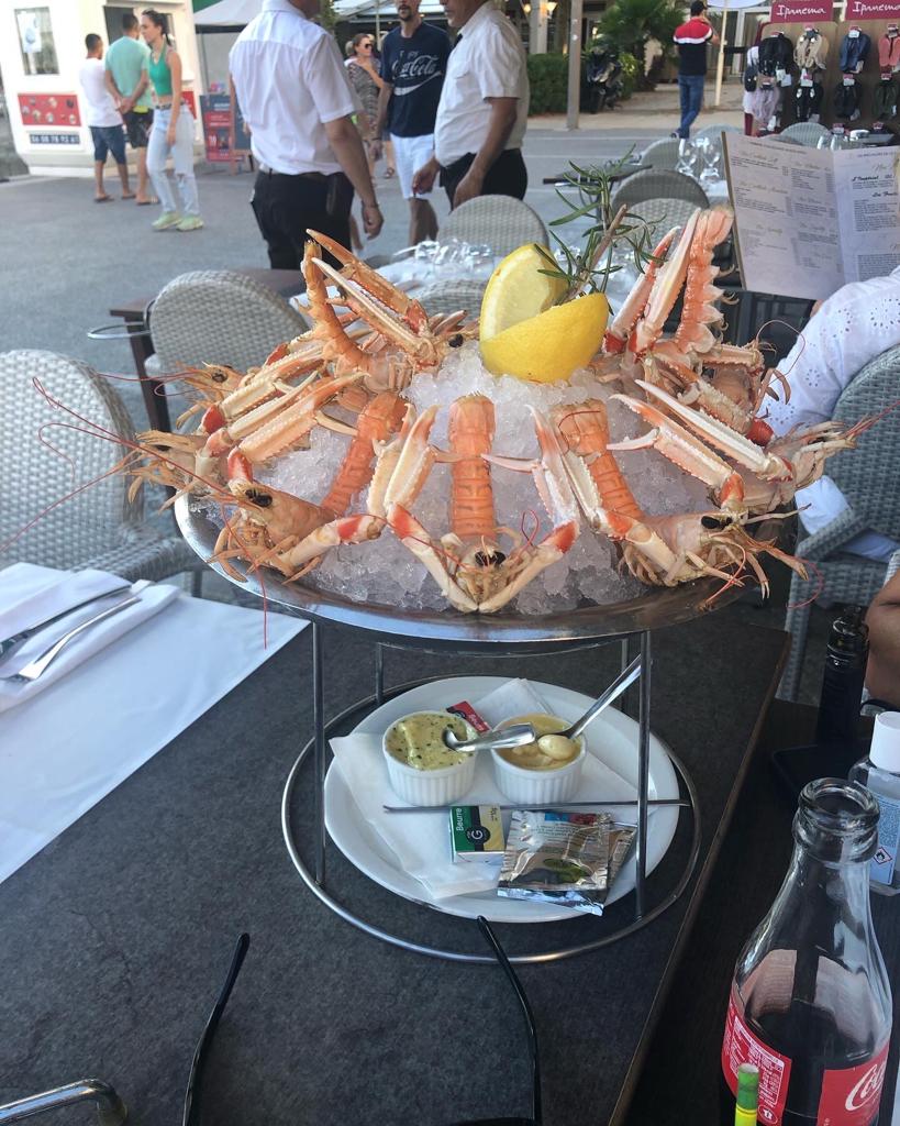 Bon! Commençons par l'accueil : il a été super, et tout le personnel pas que le serveur qui c'est occupé de nous mais toute l'équipe. Ensuite nous avons commandé, pour les grands, nous avons pris l'Impérial à 130 euros avec : Langoustines, Crevettes, Moules, Huître, Tourteau,Homard et plein d'autre produits frais. Un peu d'attente pour ce plat car beaucoup de travail. C'était délicieux et franchement ça vaut le coup. Pour la petite, nous avons pris le menu enfant à 13 euro frite plus pavé de saumon avec un dessert. Là! par contre, je suis un peu déçu. Premièrement: par le prix que je trouve trop élevé pour un menu enfant. Deuxièmement: le pavé de saumon était vraiment fade et huileux. Troisièmement: à ce prix là, j'aurais préféré avoir des frites maison. En cas de souci avec vos plats ne pas hésiter à en parler aux serveurs. Pour l'emplacement : c'était magnifique! en salle où en terrasse vous avez vue sur le port de la grande motte. Vous serez peut être un peu serrés mais ça passe. Par contre, pour le stationnement, aïe ! Bon courage pour trouver une place ou stationner. Nous avons tourné pendant 20 à 30 minutes pour trouver une place. En plus, le stationnement est payant jusqu'à 22h. Pour conclure, je vous recommande de manger là bas au moins une fois dans votre séjour.