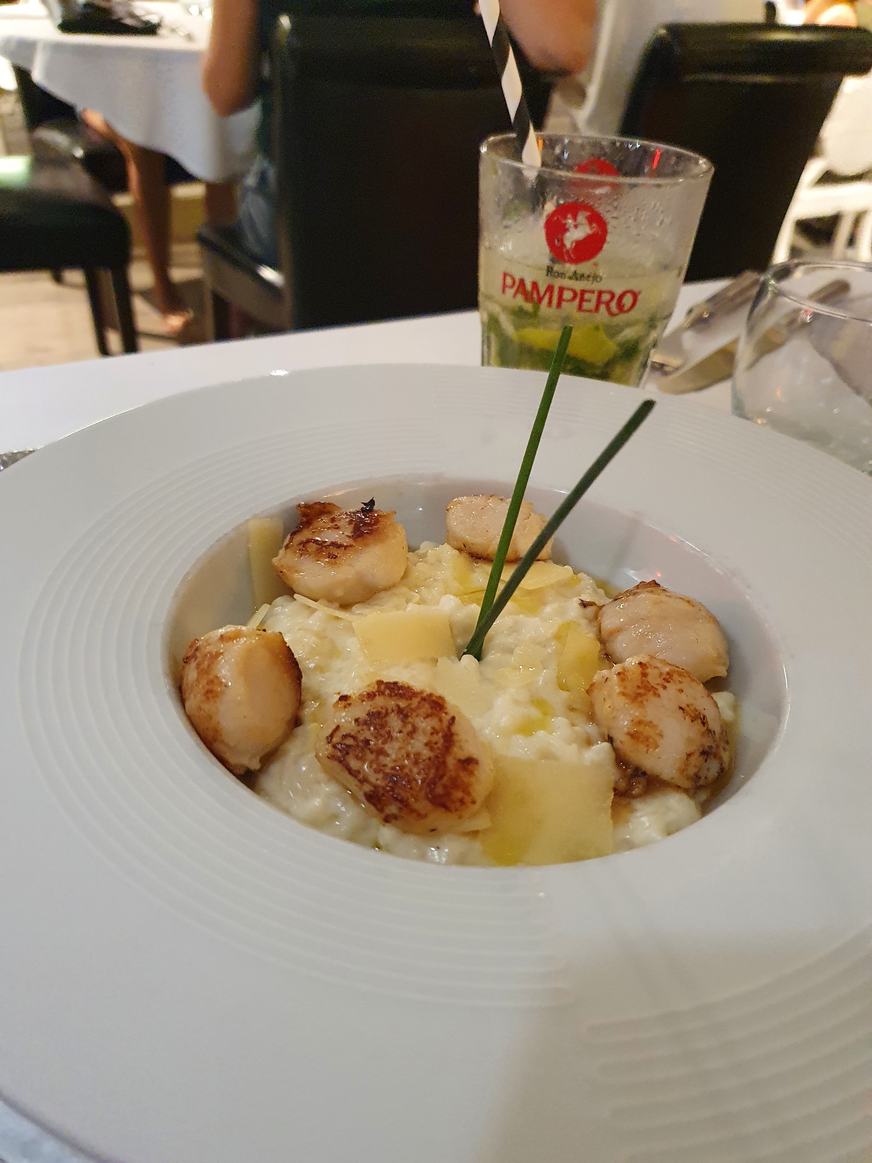 Juste un délice 6 huitres fine clair et pour moi huitres gratinées fondue de poireaux au Champagne ensuite risotto aux saint Jacques au Champagne et pour finir un café gourmand allez y les yeux fermés !!!👍👍👍👍👍