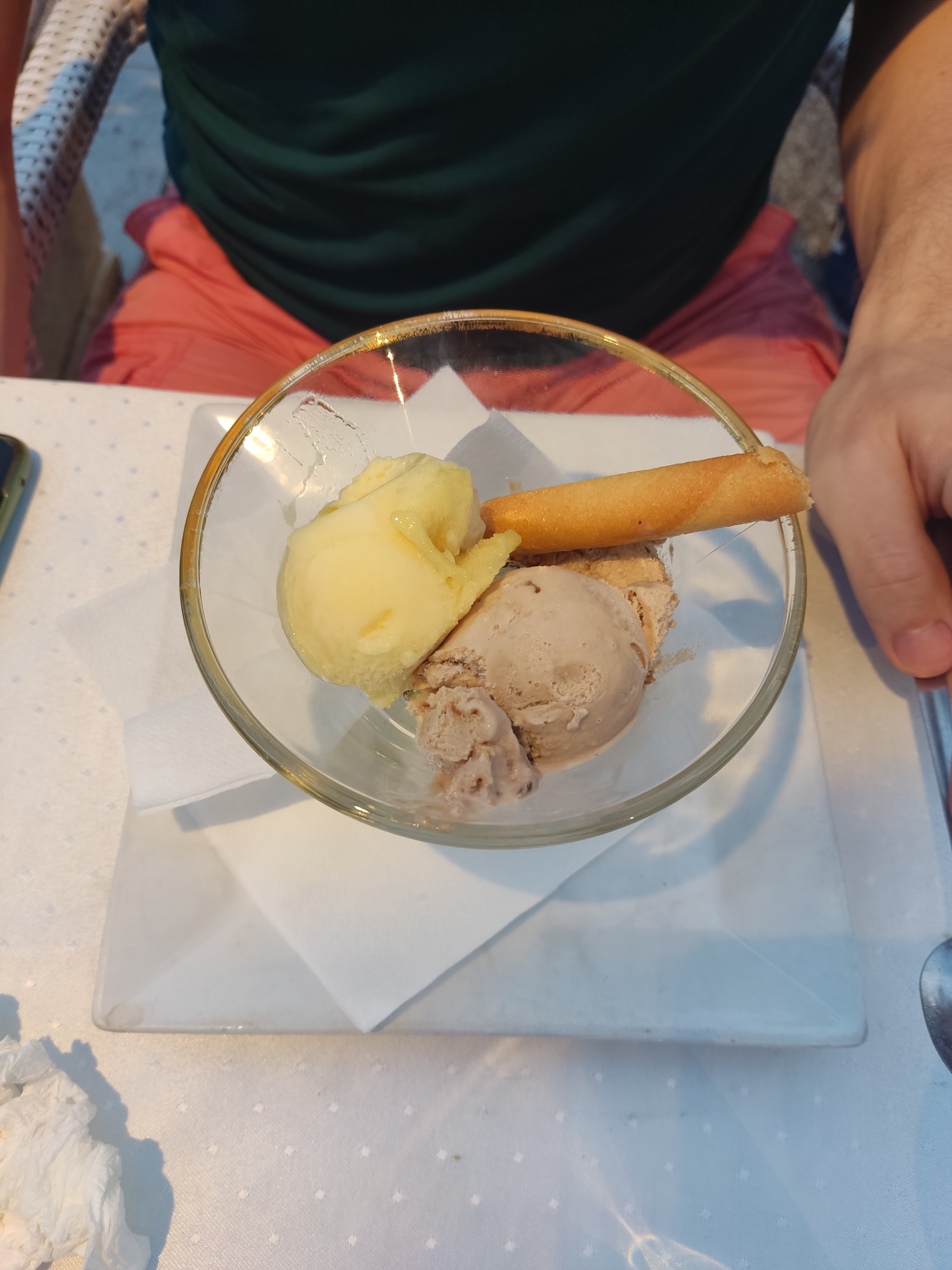 Menu très bien. Prix un peu chère. Mais ce que j'ai pas aimé: - la table à côté de nous était de 3 personnes. Quand ils sont partis le serveur ( le patron je pense) a changé qu'une nappe de table de deux. L'autre table de 2 personnes, il a sinplement retiré les miettes avec sa main et a laissé la même nappe. Il a redressé la table et d'autres clients sont venus manger sur une nappe de table déjà utilisé. Au prix du repas et avec le covid c'est médiocre.
