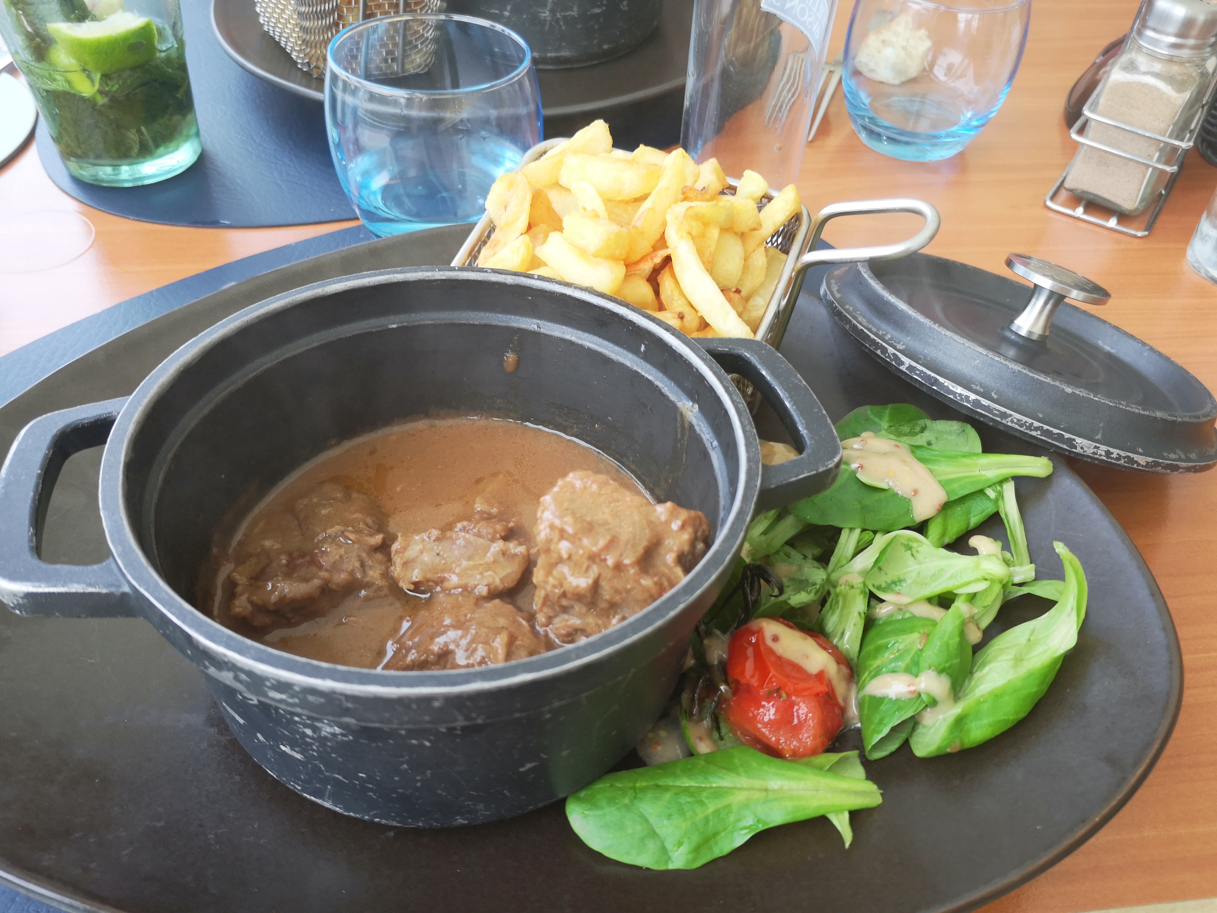 Les boissons servies ne sont pas en adéquation avec la carte. Quand on commande une viande rouge la moindre des choses et de demander la cuisson. Les frites ne sont pas dignes de cette appellation. Et quand l'on porte une réclamation et que l'on nous répond ah bah désolé en rigolant je ne trouve pas cela très respectueux du client.