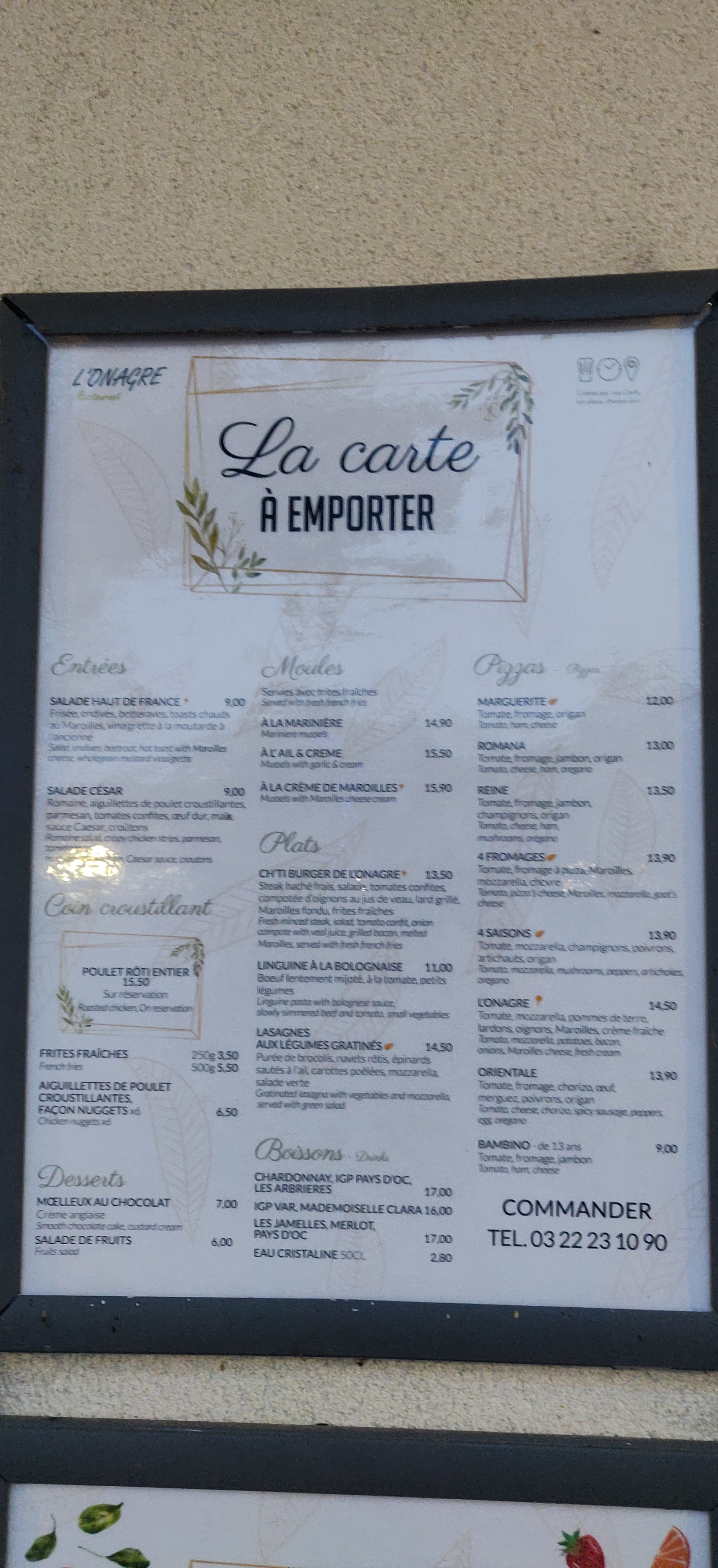 Nous avons dîné plusieurs fois à l'onagre pendant notre semaine de vacances. Le soir ce sont des buffets dont le thème change chaque jour, beaucoup de choix. Le midi, nous avons adoré le chti burger et les moules aux Maroilles!! Merci à Karine et son équipe Nous reviendrons l'année prochaine!