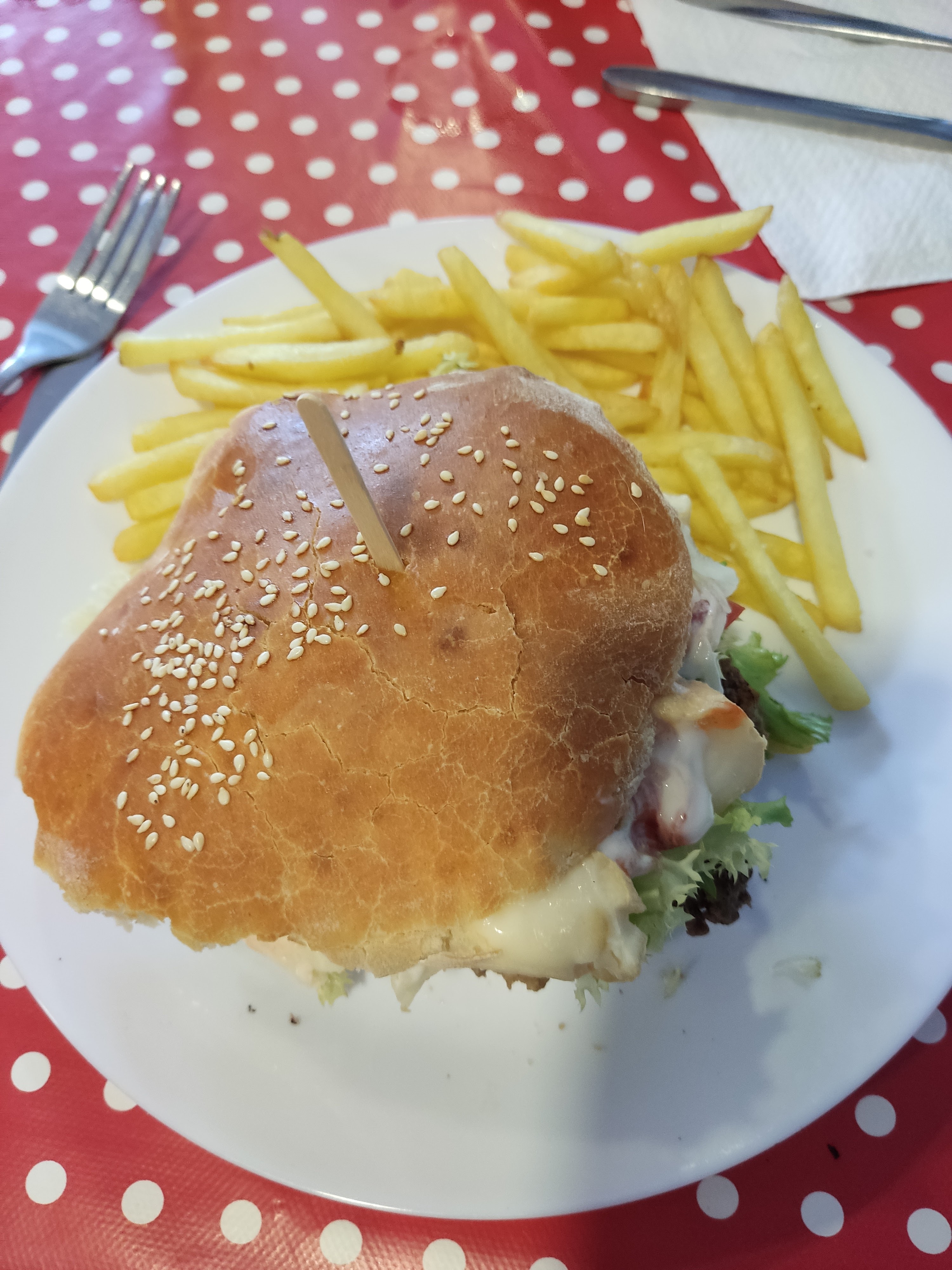 Un petit restaurant mais excellent et surtout pas cher du tout, les hamburgers sont délicieux et faits maison ! On y viens souvent et c’est toujours aussi bon (surtout les gaufres 🥰)