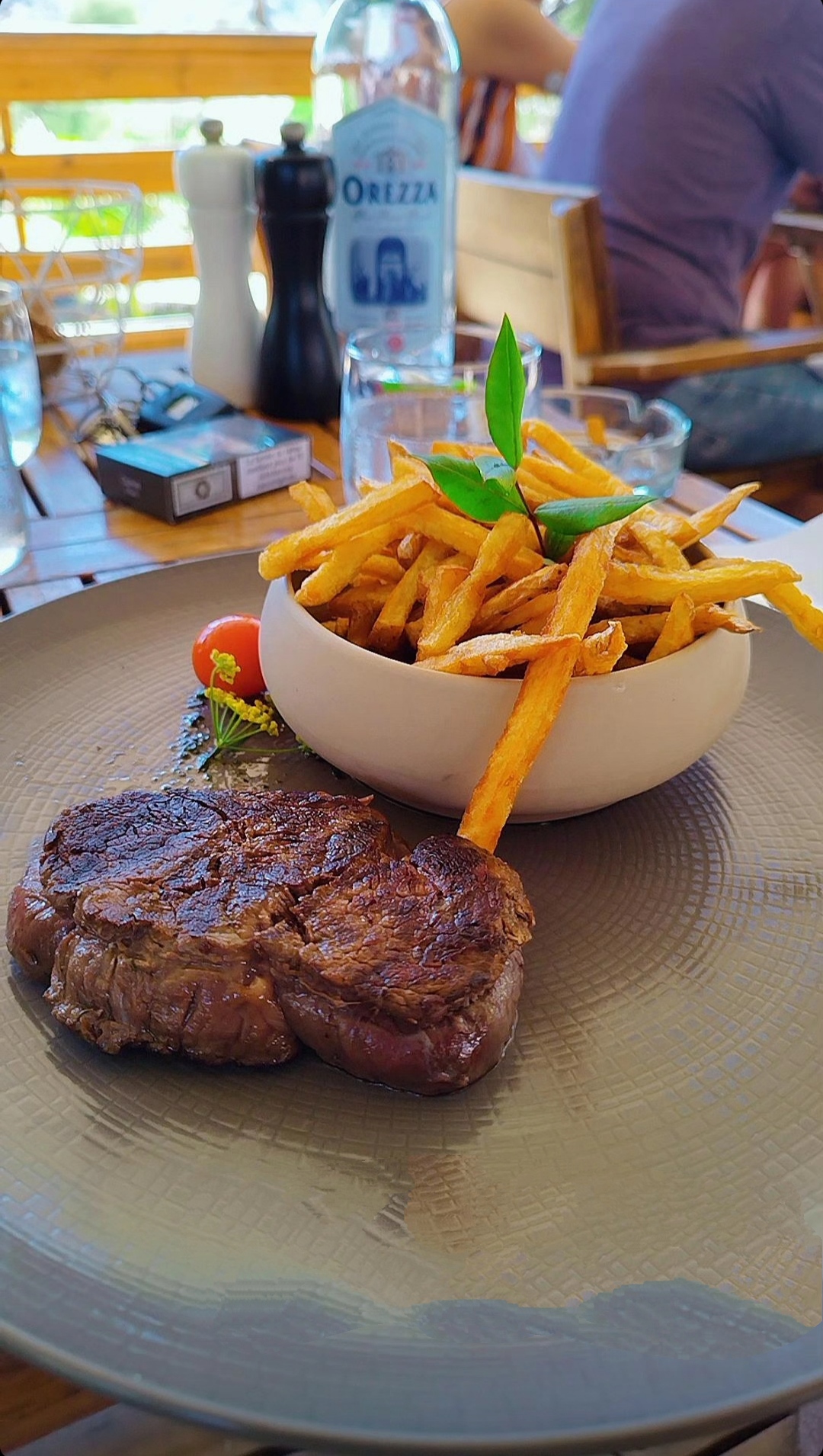 Un petit coin de paradis : restaurant avec cuisine de grande qualité ( grillades de viandes et poissons) avec un belle plage nichée dans une baie calme au bord d’une eau turquoise 🏝️