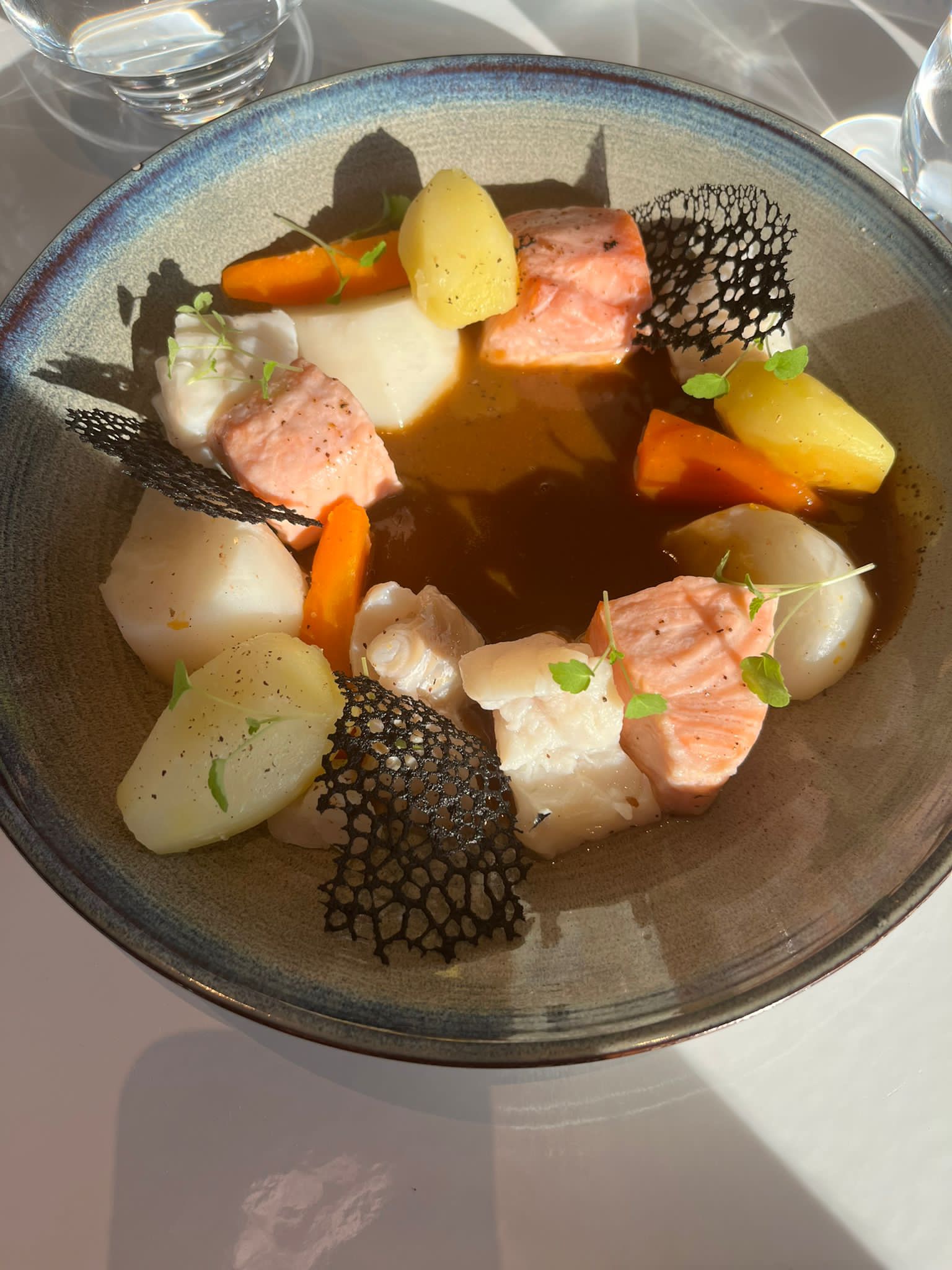 Délicieux repas dans un cadre magnifique. La joue de lottes est très bonne, le gâteau de chou original et je recommande vivement l'entremets ivoire / cassis, un vrai régal !