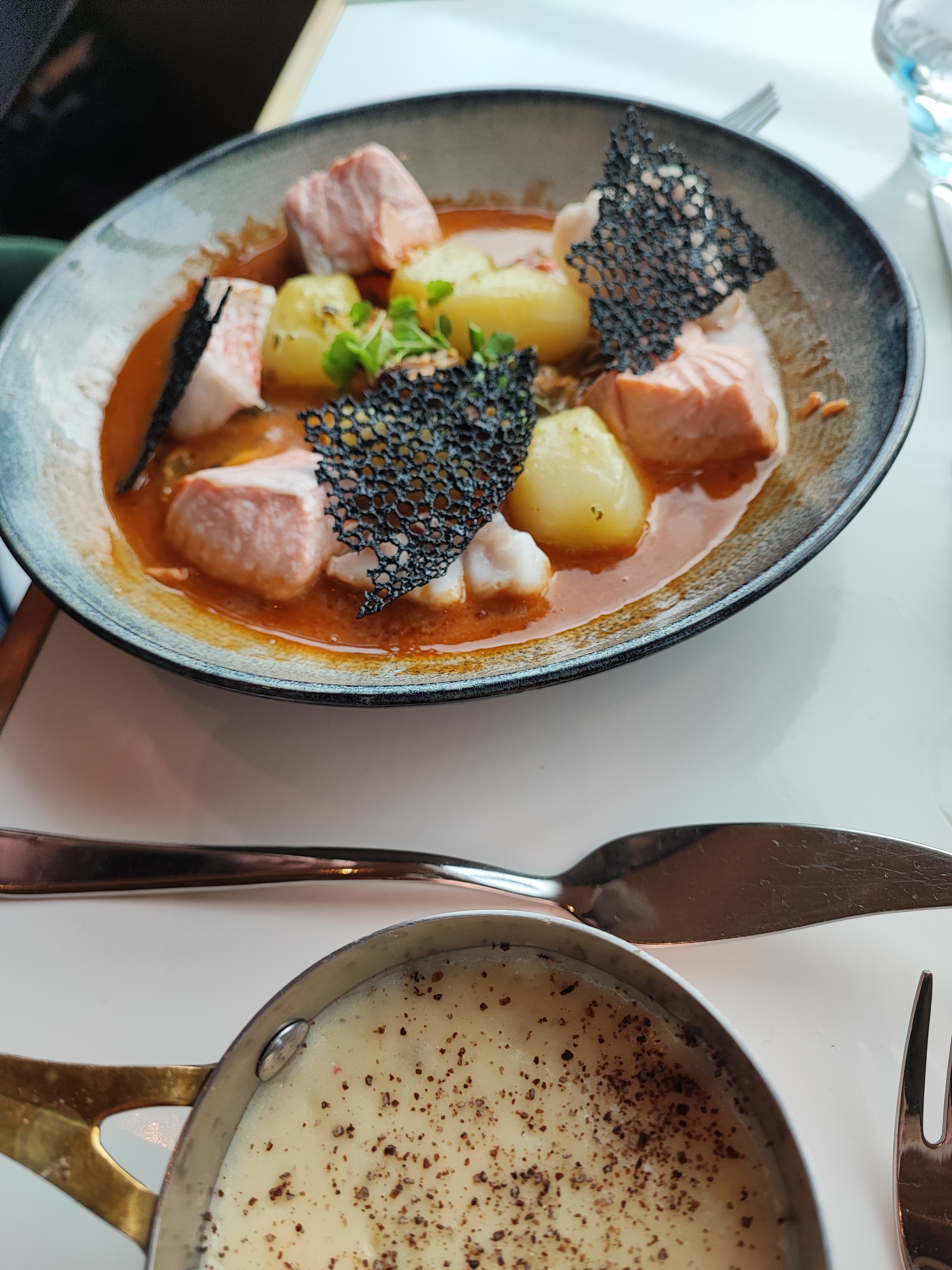 Cadre au top mais je ne vais pas au resto uniquement pour la déco. Plat servis alors que apero pas terminé. Ils ont en plus oublié les boissons . Plats servis tièdes. Pot au feu de la mer...ou comment massacrer un emblématique de la cuisine française...pas de légumes une sauce en boîte est meilleure. Bref je n y retournerai plus .