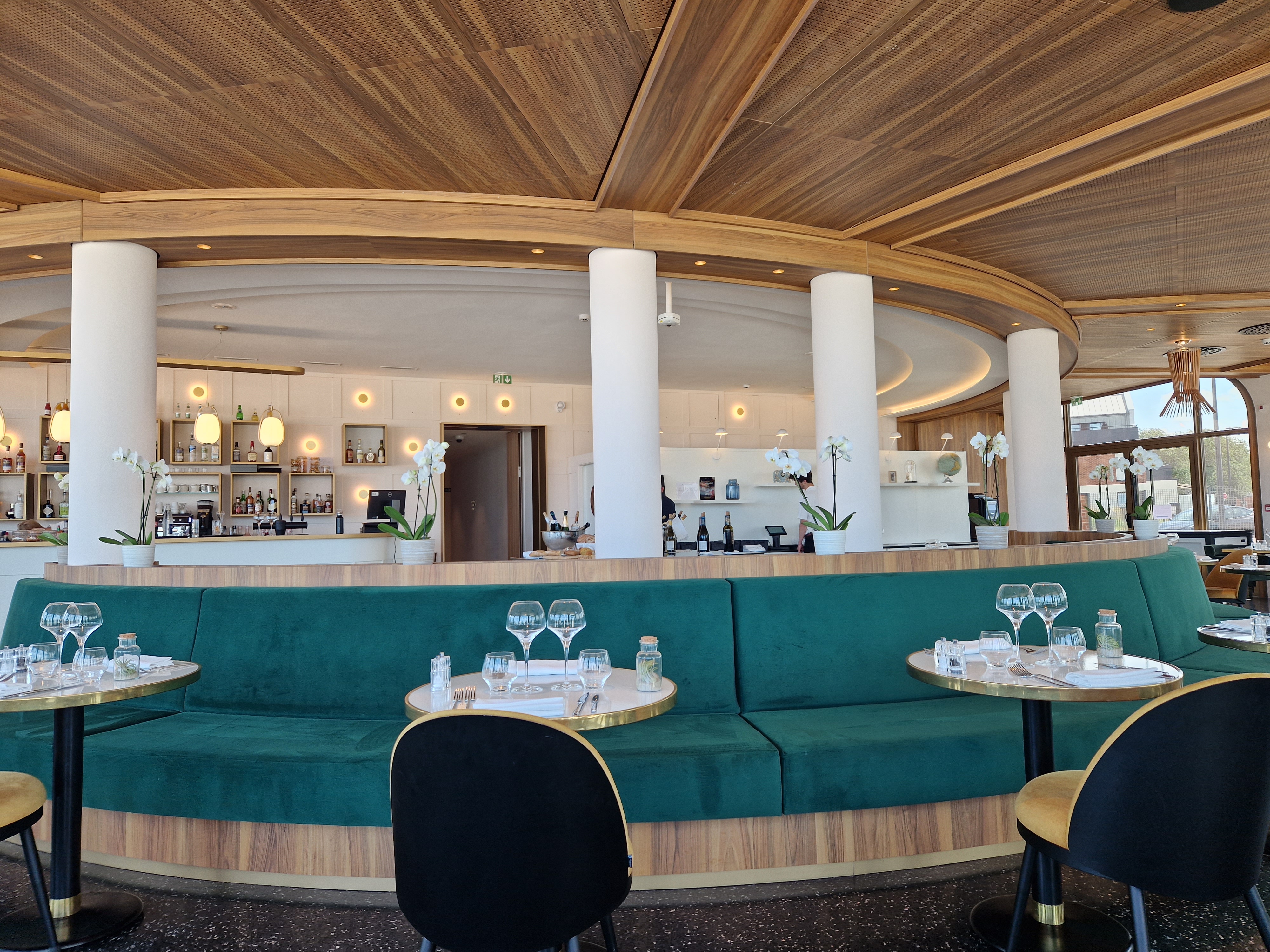 Un très bel endroit : la salle est splendide, la rotonde offre une vue panoramique sur la mer et la jetée. Le ciel couchant donne une luminosité superbe à la salle. L’équipe est accueillante et professionnelle Les plats sont raffinés et originaux Nous avons passé une magnifique soirée