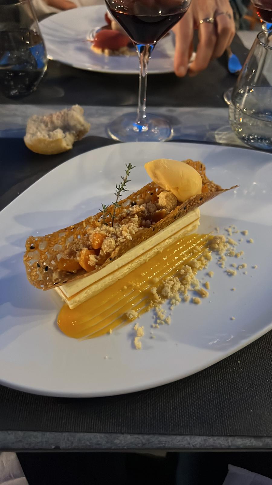 Super expérience hier soir : excellent niveau tout est cadré au détail, ce qui était impressionnant c était le très bon timing au niveau du service. Le cadre campagne avec un fond musique blues, les conseils du chef pour les plats et vins, des mets de transition apportés avec des saveurs délicieuses, avec dans la carte des surprises. Et le DESSERT A TOMBER. Franchement 👌👌 BRAVO tout était parfaitement dosé