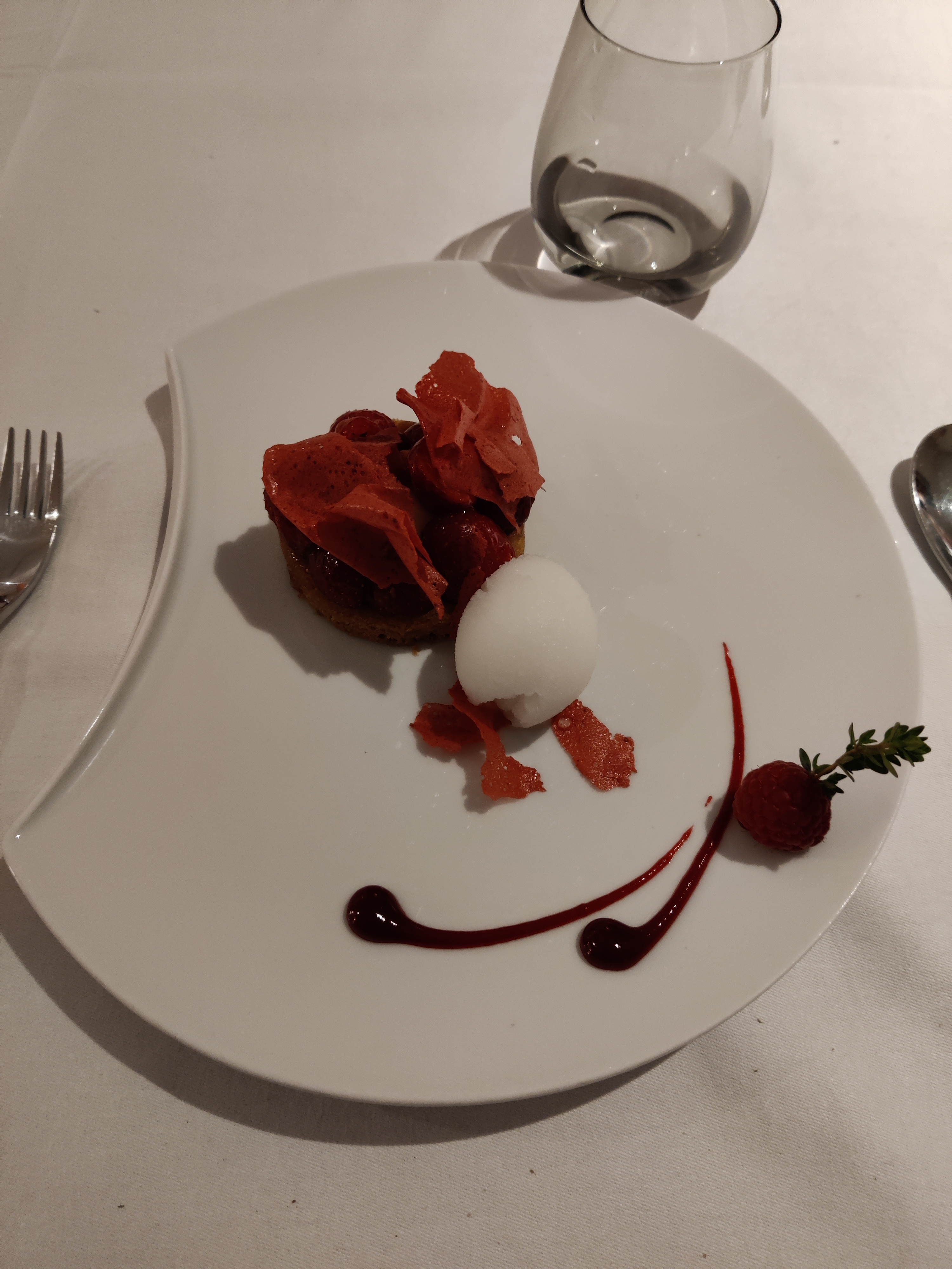 Des plats raffinés excellents, cependant quelques opportunités d'amélioration dans le domaine du service: les bulles du cocktail au champagne étaient devenues rares (bouteille clairement non fraîchement ouverte). Également besoin d'améliorer le service du vin quand le seau à glace n'est pas sur la table .mais pas de problème, je me suis levé me servir pour boire avant d'avoir vraiment soif. Globalement excellente table.