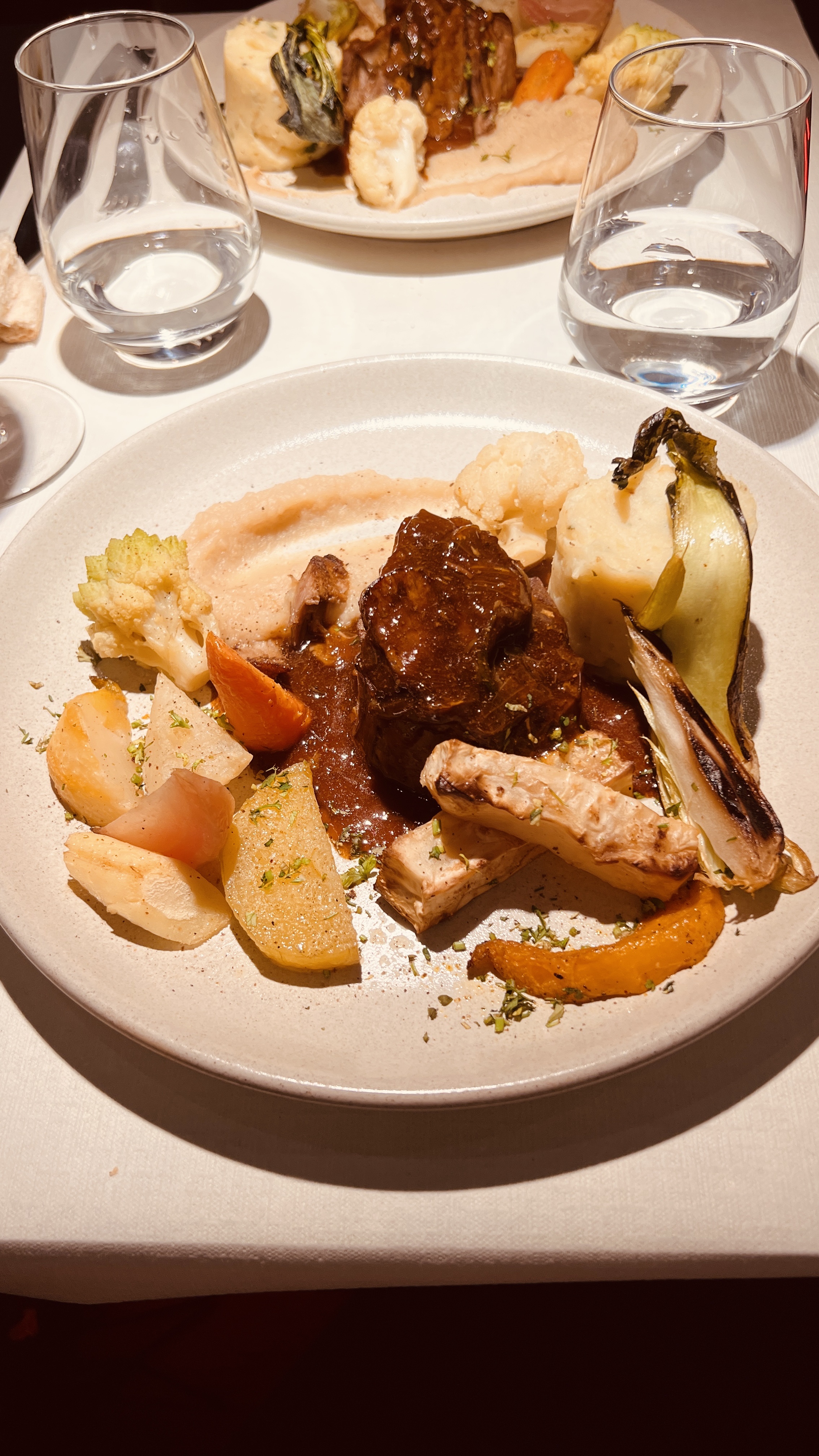 Très déçue nous avons pris la côte de boeuf à 95 euros Je m attendais à un plats exceptionnel Rien du tout. .. Juste une purée avec un semblant de truffe Des légumes avec un cheveu dedans Les serveurs sont complètement perdu pas à l écoute Les tables sont très rapprochées Et la note chère
