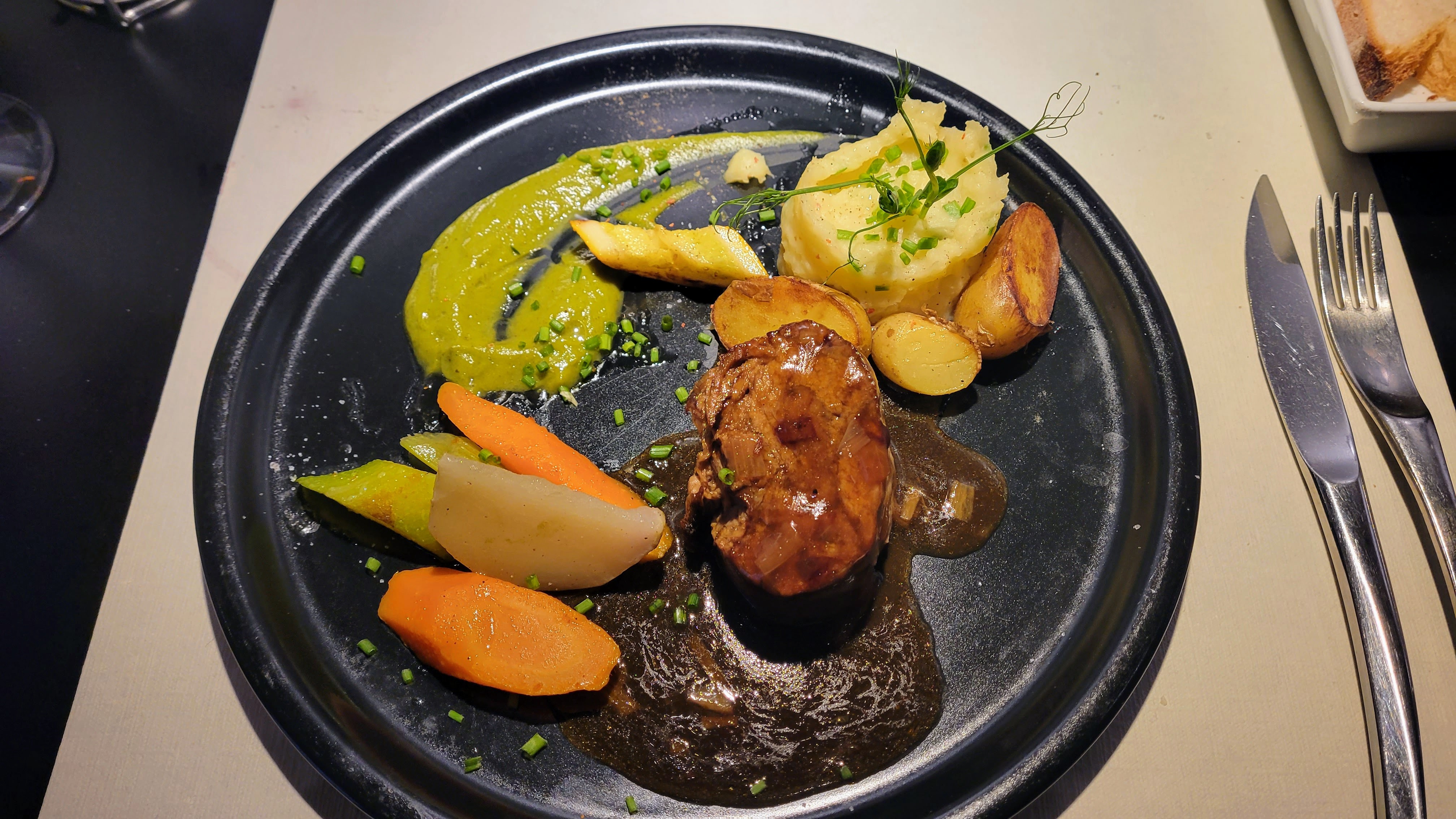 Super ! Le repas était merveilleux aussi bien les plats proposés que la cote de bœuf a partagé. Le chef passe de manière régulière à la table pour s’assurer que tout se passe bien ! Très bon choix de vin pour accompagner tout cela.