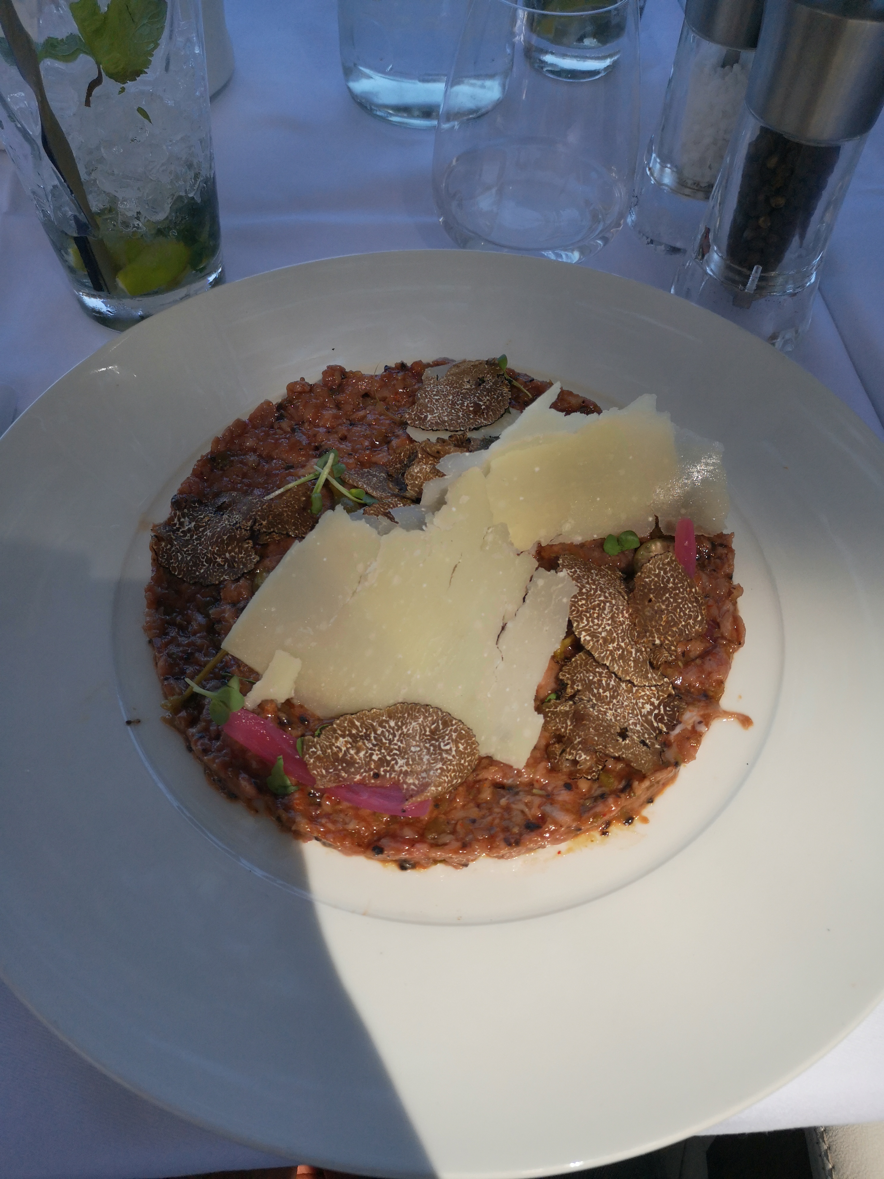 Nous avons déjeuné dans ce restaurant et nous avons eu une agréable surprise. Les plats étaient très bons (risotto pour mon mari et pièce de boeuf pour moi). Les frites étaient excellentes. Le seul petit hic était la chaleur car nous étions assis en plein soleil et nous aurions prolongé le repas avec un dessert si nous avions eu un peu d'ombre pour nous protéger.