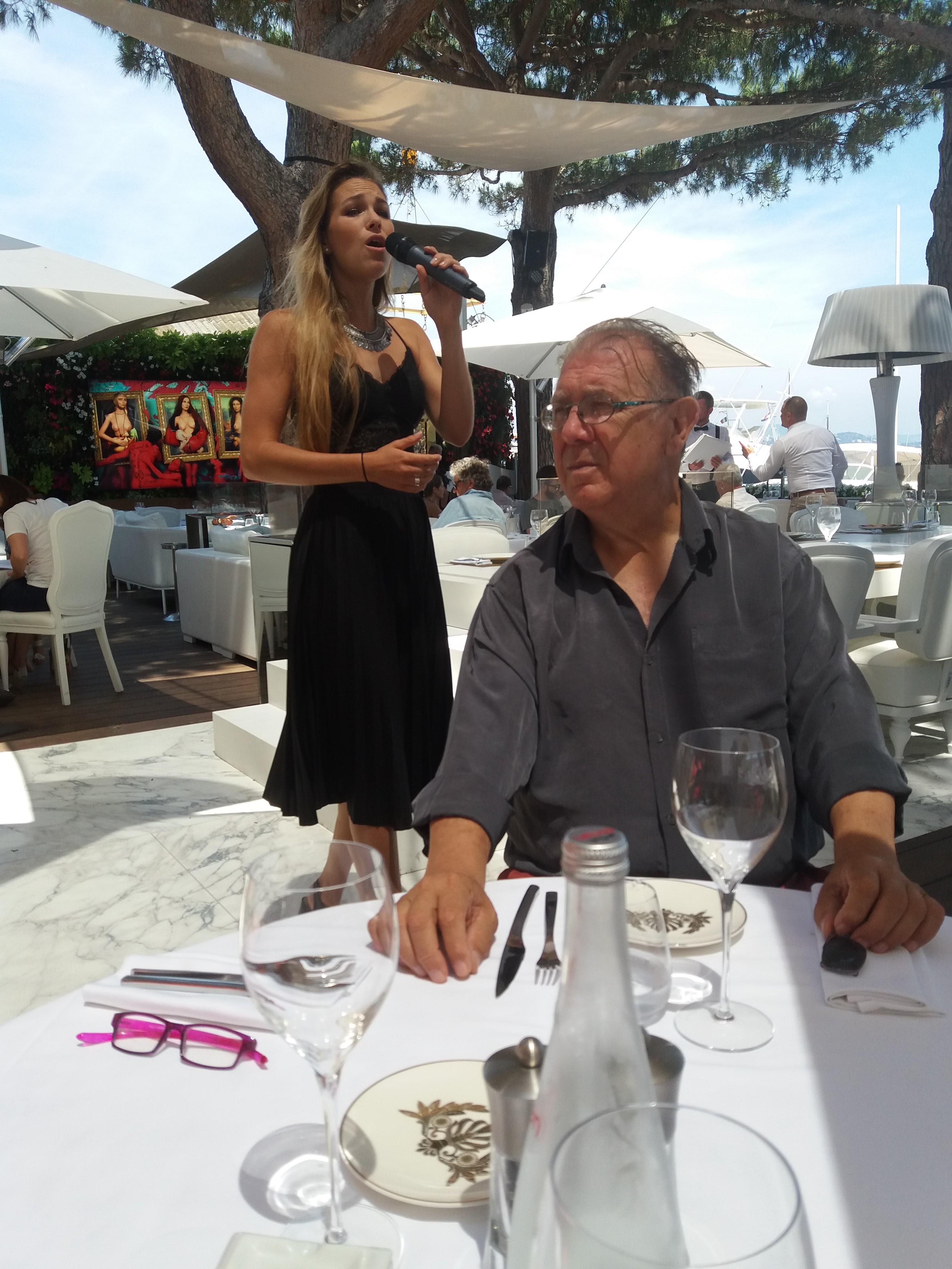 Très St-Tropez mais plat du jour abordable et délicieux, vin même au verre excellent, cadre sélect mais sympa, sous les pins... Et une chanteuse à la voie douce et mesurée, envoûtante et professionnelle. Super repas